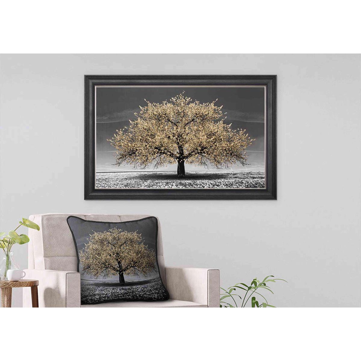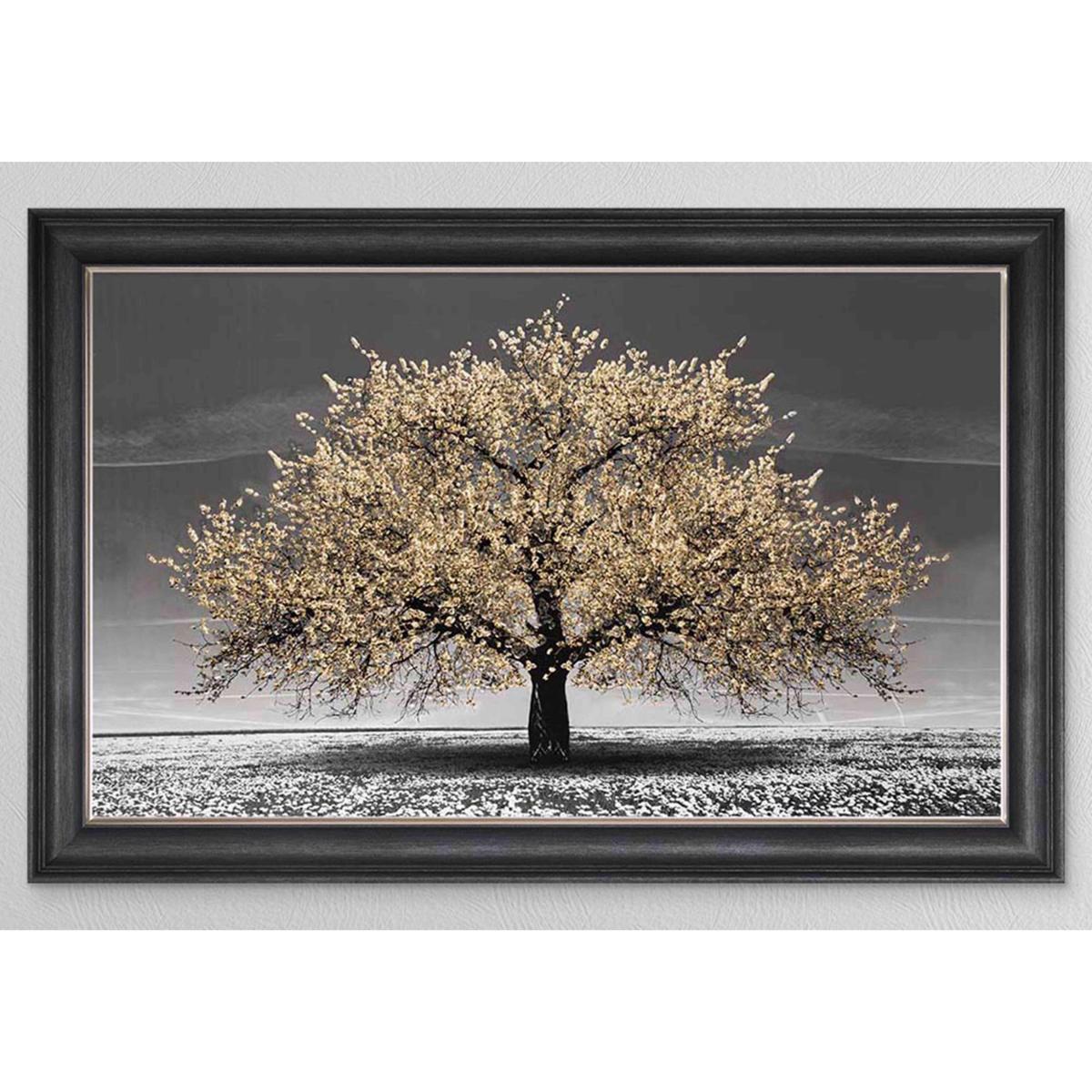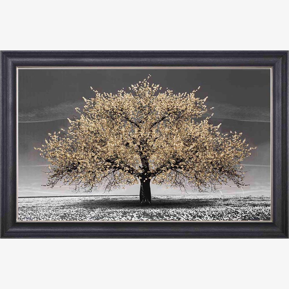 Bring home a truly unique piece of wall art. With its contrasting black and white photographic background and luminous hand-embellished cherry tree, this framed art is just so eye-catching. Why you'll love it An exquisitely crafted piece of framed art. A study in contrasts, both in colour and in style. Monochromatic photographic background. Champagne-coloured cherry tree blossoms are hand-embellished. Finished with liquid glass and Swarovski crystals. Beautifully presented in a dark grey wood-effect frame with a gold accent. Made to order in the UK. This piece of framed art is part of the Furniture Village accessories collection. What you need to know Indoor use only. Do not use wire or string to hang. Hanging instructions supplied. Dimensions Height: 74 cm (30 in). Depth: 4 cm (2 in). Width: 114 cm (45 in).