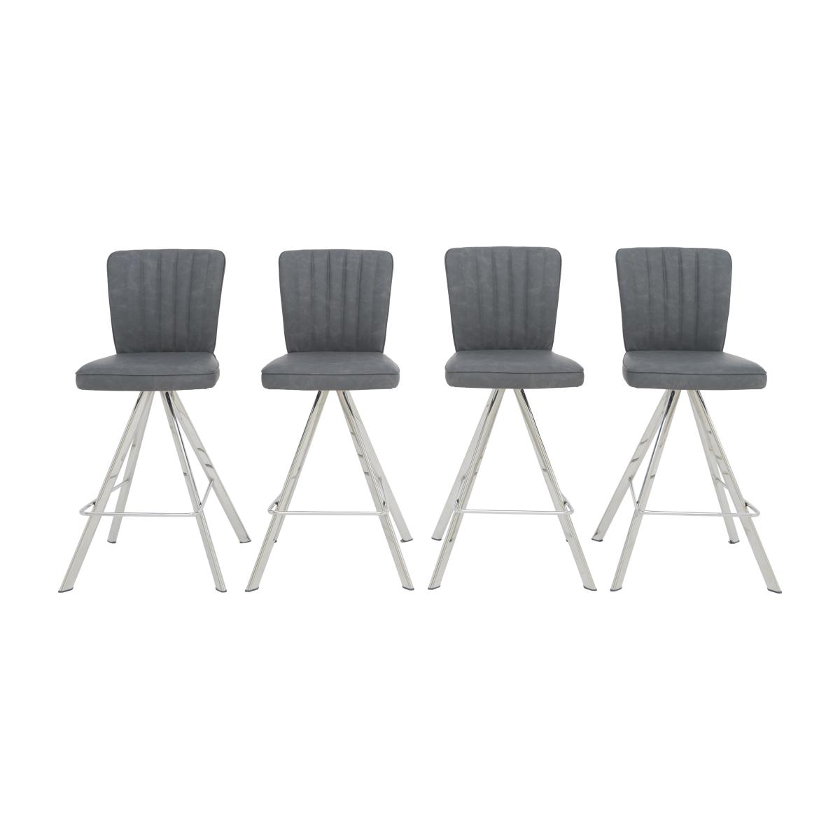The gorgeous marble-effect ceramic and polished stainless steel of the Vegas range epitomises modern glamour. This stunning range instantly brings a touch of class to any interior, and with a range of furniture to choose from you can enjoy its timeless beauty throughout your home. From dinner party-ready dining sets to a wonderfully stylish yet practical shelving unit, this range is both beautiful and sturdy. The extending dining table steals the show, seating up to 10 people when fully extended, perfect for hosting in comfort and style. This gorgeous range is exclusive to Furniture Village. This set of four barstools offers plenty of stylish seating with bags of on-trend glamour. There’s no compromise on comfort either thanks to the foam cushioning and footrests. Why you'll love it. Evening drinks, Sunday breakfast or dinner party, this set of swivel barstools can do it all. Contemporary glamorous style. Sleek dark grey faux leather upholstery. Stylish stitched flute detailing. Swivel base with polished stainless steel legs and integrated footrest. Exclusively at Furniture Village. This swivel barstool is part of the Vegas range. What you need to know. Cushioned with foam for comfortable dining. Steel frame and legs. These swivel barstools pair perfectly with the Vegas bar table.