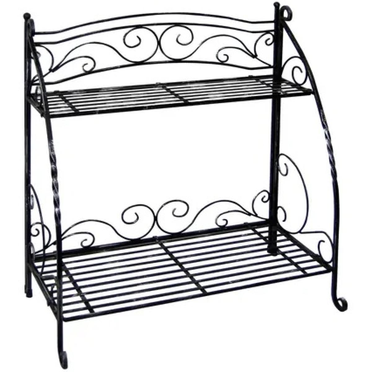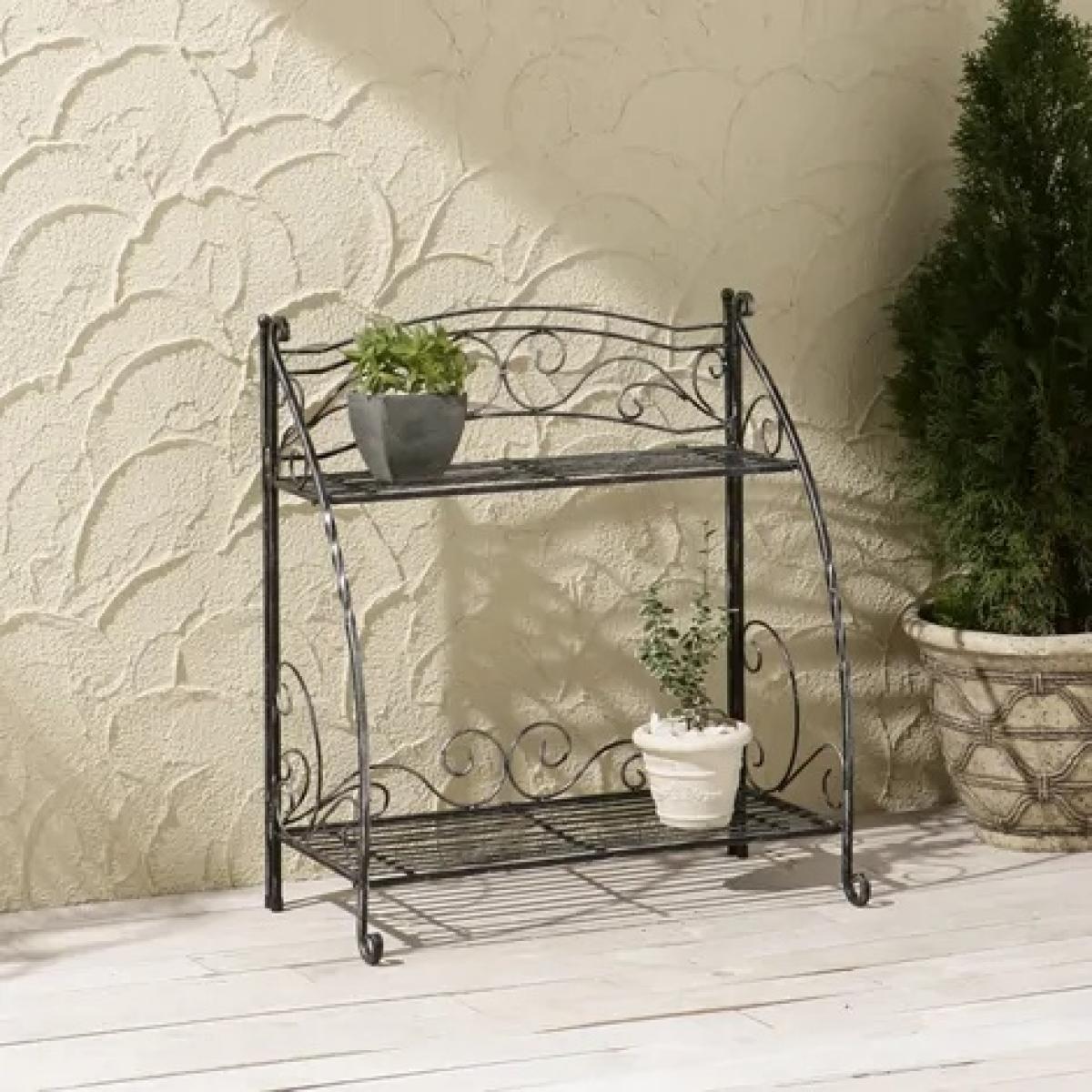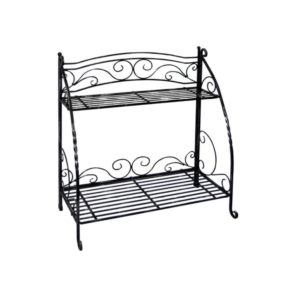 The VegTrug 2 Tier Metal  Folding Plant Stand in Black is perfect for outdoor pot plant displays, as well as a great and convenient place to store your gardening equipment! It also can also be used indoors in a decorative manner, great for styling with house plants, books, household items and almost anything else you desire. Manufactured from high quality powder-coated steel, these shelves are durable and easy to assemble. Key Features: Strong, sturdy structure, manufactured from high quality steel. Decorative classic design, made with delicate workmanship. Assembled with ease at home - simply folds out. No fixings required. 2 Shelf Colour - Black 1 Year Guarantee Dimensions: Height:73.5cm Width:65.5cm, Depth:36.5cm, Weight:6.5kg