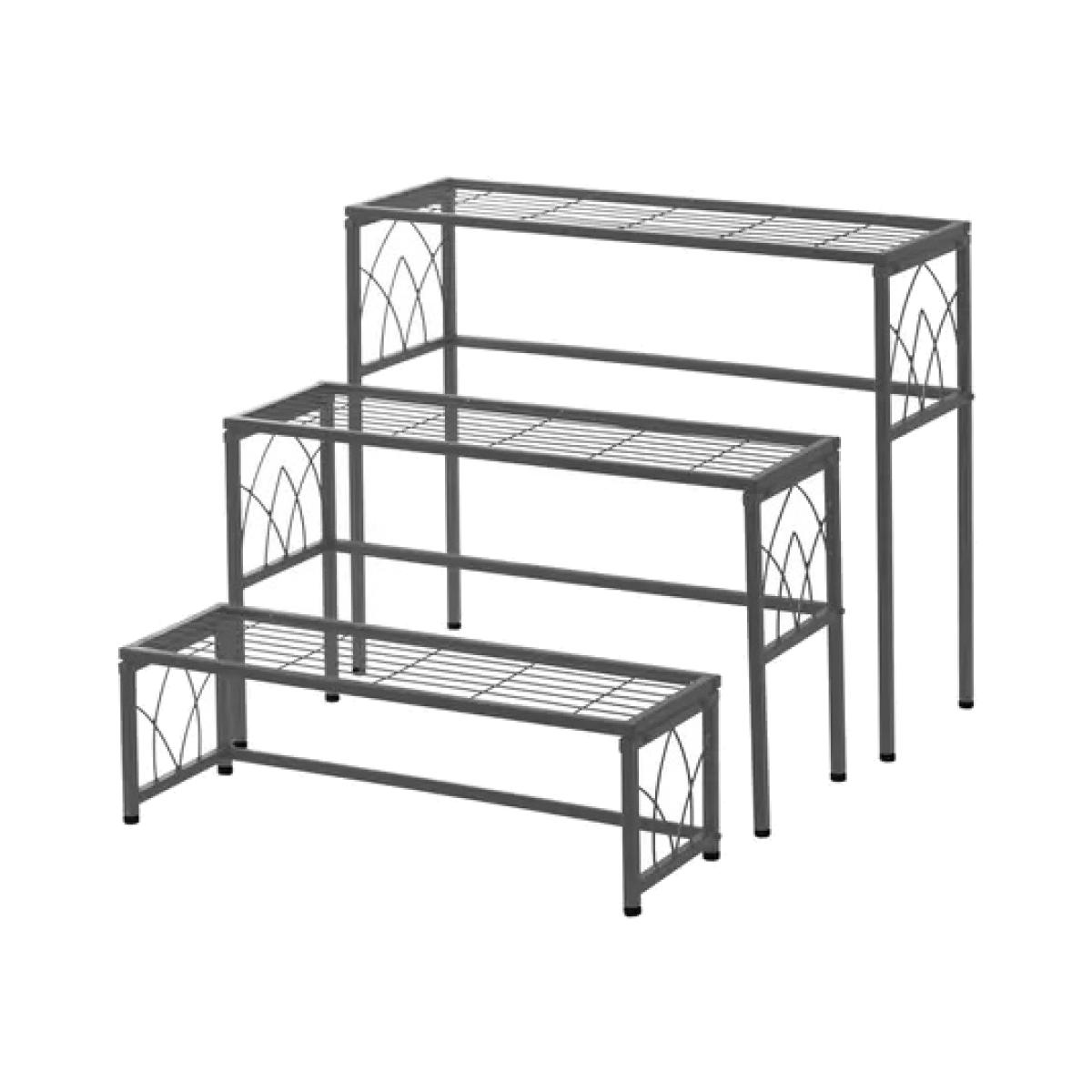 TheVegTrug 3 Piece Metal Nesting Plant Stands in Metalic Grey are perfect for outdoor pot plant displays, as well as a great and convenient place to store your gardening equipment They can also be used indoors in a decorative manner, great for styling with house plants, books, household items and almost anything else you desire. The Nesting Plant Stand set includes three different sizes of stand that can be stored easily within one another. Manufactured from high quality powder-coated steel, these shelves are durable and easy to assemble. Key Features:. *Strong, sturdy structure, manufactured from high quality steel. *Modern simple design, made with delicate workmanship. *Assembled with ease at home. *All fixings included. *Colour - Metallic Grey *1 Year Guarantee Dimensions:. *Height:75cm *Width:90cm, *Depth:28cm, *Weight:7.05kg,