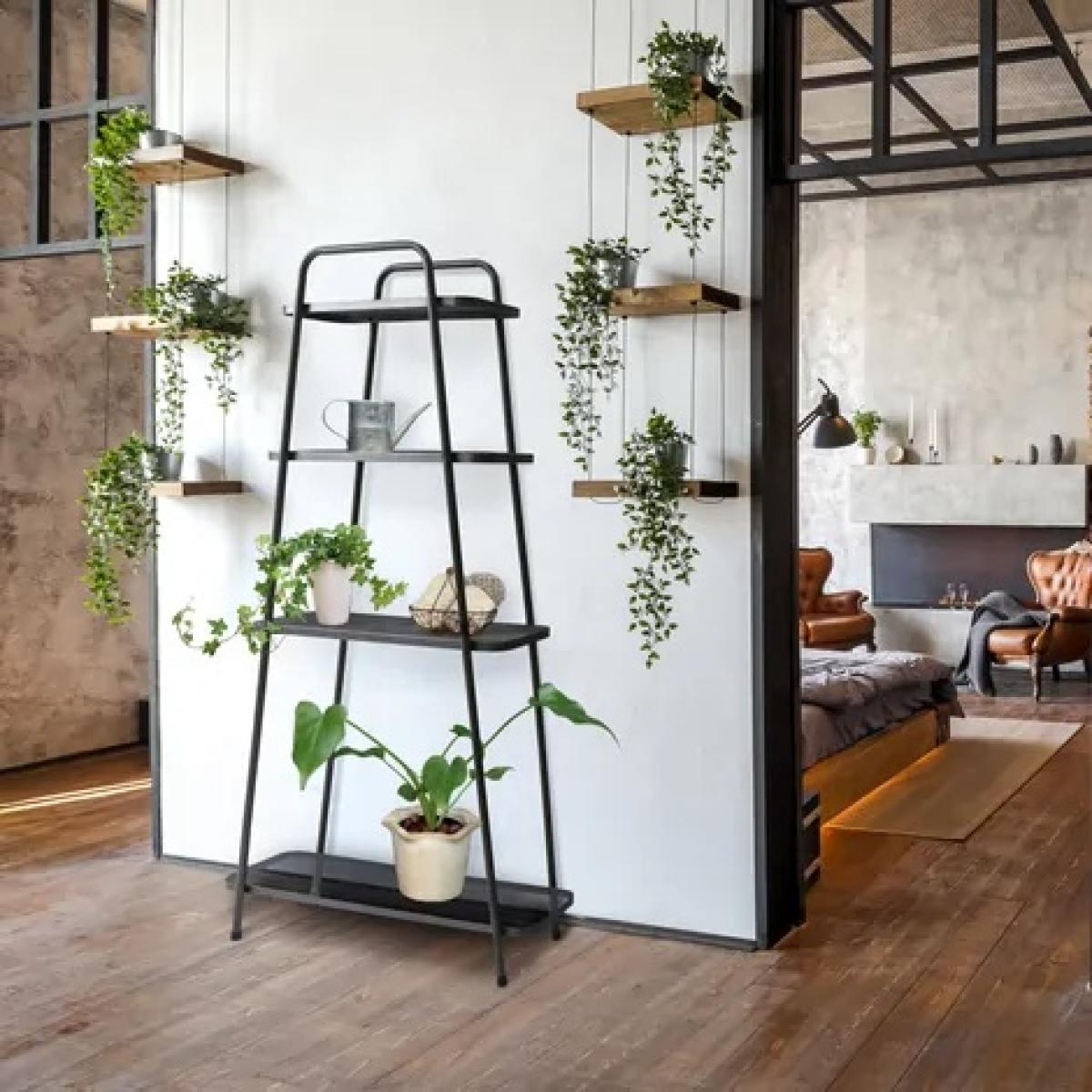 I really like this black 4-tier plant stand for its clean lines and sturdy metal frame - it feels both industrial and unfussy. It works well in contemporary flats or Scandi-inspired spaces, and you can soften the look by mixing in plants with different leaf shapes and pot textures. To style it, place taller specimens at the back on the top tiers and cascade trailing vines downwards; add a small sculpture or a stack of gardening books on one shelf for a personal touch. Because it’s narrow, it’s ideal for corners, hallways or next to a window where you want to maximise green space without clutter.