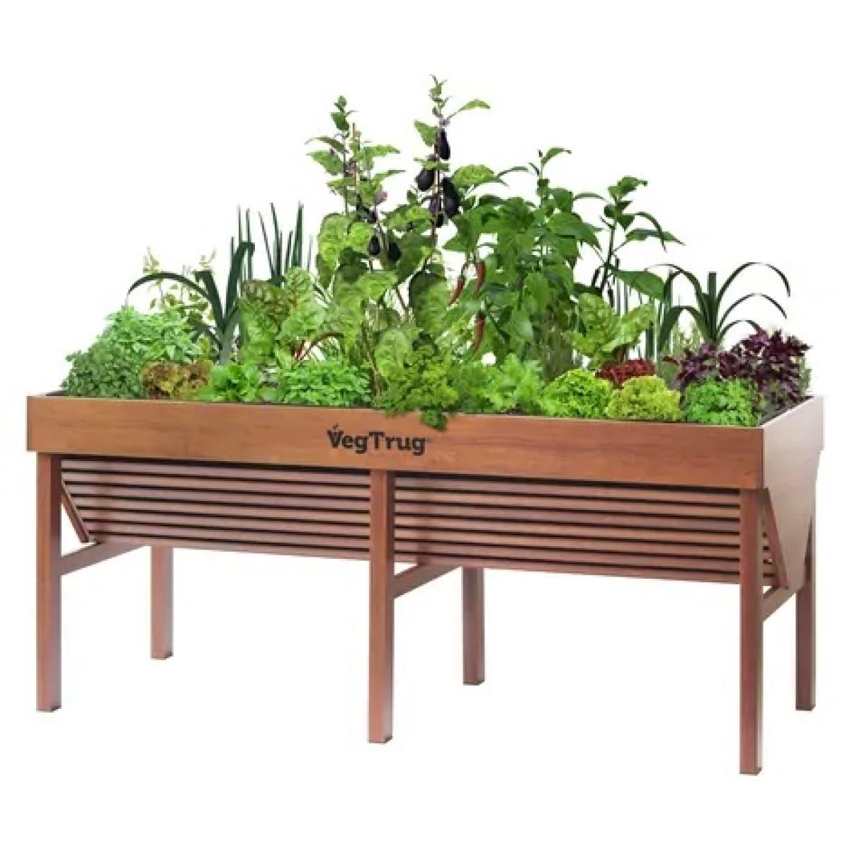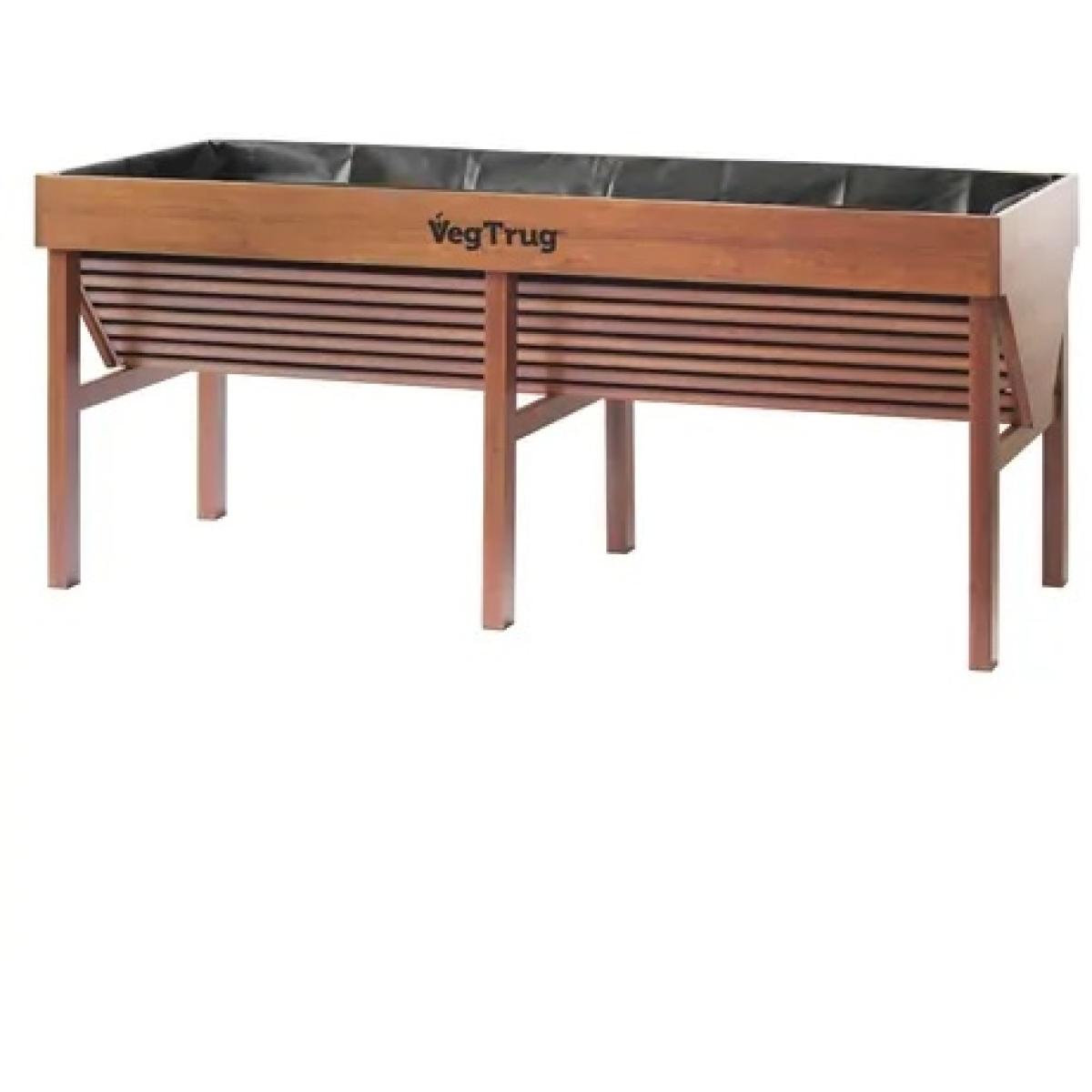 The Veg Trug Aluminium Raised Planter 1.8m in Teak Wood Effect is a modern spin on our Classic Veg. Trug, made of high-grade aluminium extrusion and wrapped in a durable all-weather coating that looks just like wood. Designed with ergonomics in mind, the raised and unique V-shape simultaneously allows for shallow and deep growth, a posture-saving working height and easy wheelchair access. The Veg Trug was designed to bring grow-your-own to everyone, whether you have a garden or not. Small spaces, balconies and courtyards are all perfect places for the Aluminium. The V-shape, partnered with our biodegradable liner, also allows for deep aeration of your crops' root systems and ensures proper drainage. Key Features: Holds 420 litres of compost. Durable aluminium with the appearance of wood. Pre-formed, biodegradable liner included. The V-shape ensures all kinds of growth can be supported. Ideal for smaller spaces. Comfortable working height, easy for wheelchair access. Home Assembly Colour - Teak Wood Effect 1 Year Guarantee Dimensions: Height:80cm Width:183cm, Depth:76cm, Weight:20.20kg,