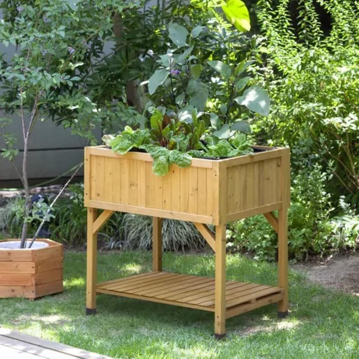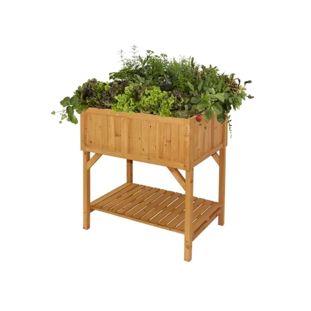 The Veg Trug FSC 100% Raised Bed Planter in Natural Wood is the ideal raised bed for growing all your daily-use crops. A perfect grow-your-own companion for cooking, it fits perfectly on a patio or balcony; always within an arm's length of the kitchen. The Raised Bed Planter stands at 80cm high, an ideal height that allows an easy harvest without the need for crouching down or compromising posture. Made of durable 100% FSC wood, the Raised Bed Planter is perfectly suited for outdoor use. A water-based, food-safe preservative ensures all your crops are healthy and ready for cooking. Key Features: Holds 110 litres of compost. Useful storage shelf below the bed. Comfortable working height. Home Assembly Colour - Natural Wood 1 Year Guarantee Dimensions: Height:80cm Width:78cm, Depth:58cm, Weight:7.48kg,