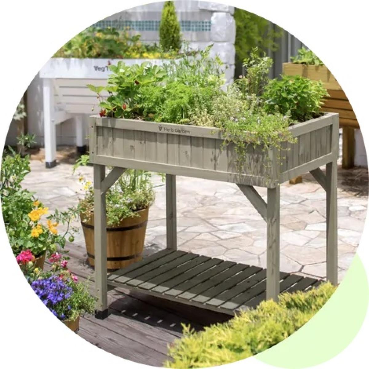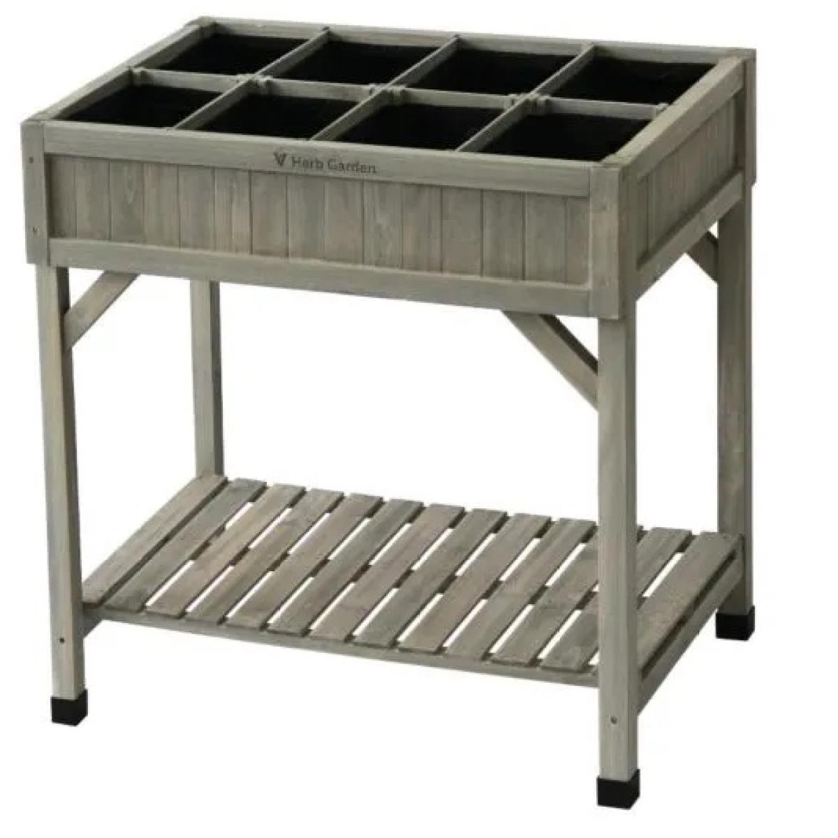 The Veg Trug Herb Garden Raised Planter in Grey Wash Wood is the ideal raised bed for growing all your daily-use herbs. A perfect grow-your-own companion for cooking, it fits on a patio or balcony; always within an arm's length of the kitchen. Its eight individually-lined pockets prevent aggressive herbs from fighting one another for resources and allow them to grow in harmony. The Herb Garden stands at 80cm high, an ideal height that allows an easy harvest without the need for crouching down or compromising posture. It holds 40-50 litres of compost. Made of durable 100% FSC wood, the Herb Garden is perfectly suited for outdoor use. A water-based, food-safe preservative ensures all your crops are healthy and ready for cooking. Key Features: Soil Capacity 55. L 8 divided pockets prevent aggressive plants from fighting. Comes with 8 pre-formed liners that safely biodegrade. Comfortable working height. Home Assembly 100% FSC Wood Colour - Grey Wash Wood 1 Year Guarantee Dimensions: Height:80cm Width:78cm, Depth:58cm, Weight:8kg