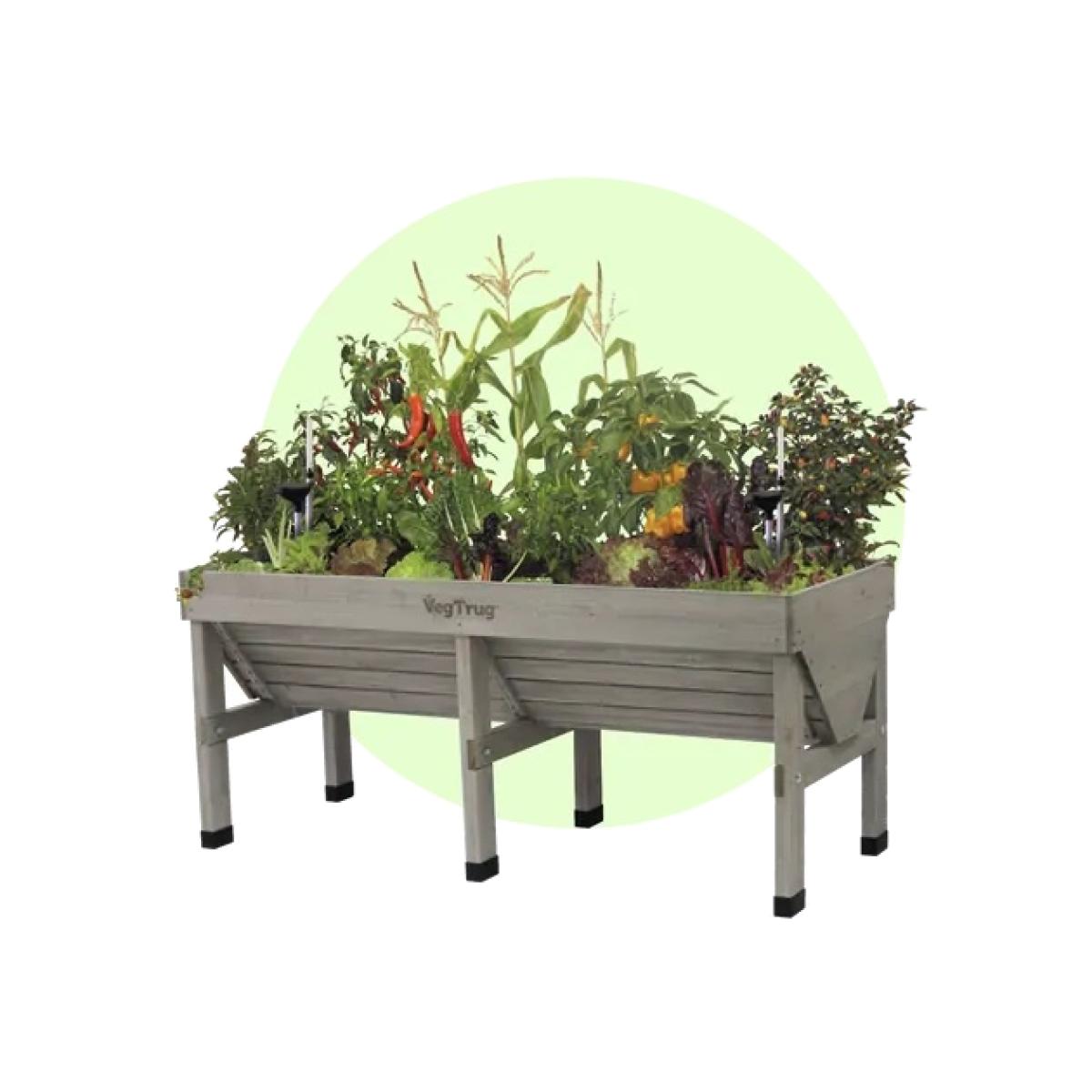 The Veg Trug Medium Classic Raised Planter in Grey Wash Wood is designed with ergonomics in mind, the raised and unique V-shape simultaneously allows for shallow and deep growth, a posture-saving working height and easy wheelchair access. The Veg Trug was designed to bring grow-your-own to everyone, whether you have a garden or not. Small spaces, balconies and courtyards are all perfect places for the Classic (though the Wall Hugger goes even smaller!) The V-shape, partnered with our biodegradable liner, also allows for deep aeration of your crops' root systems and ensures proper drainage. Made of durable 100% FSC wood, the Veg Trug is perfectly suited for outdoor use. A water-based, food-safe preservative ensures all your crops are healthy and ready for cooking, eating or just giving back to nature. Key Features: Holds 420 litres of compost. Pre-formed, biodegradable liner included. Treated with a food-safe, water-based preservative that ensures wood is long-lasting. The V-shape ensures all kinds of growth can be supported. Ideal for smaller spaces. Comfortable working height, easy for wheelchair access. Home Assembly Colour - Grey Wash Wood 1 Year Guarantee Dimensions: Height:80cm Width:183.4cm, Depth:76cm, Weight:26.72kg, What's Included: 1 Classic Veg Trug 1 form-fitting drainage liner All fixings and bolts required