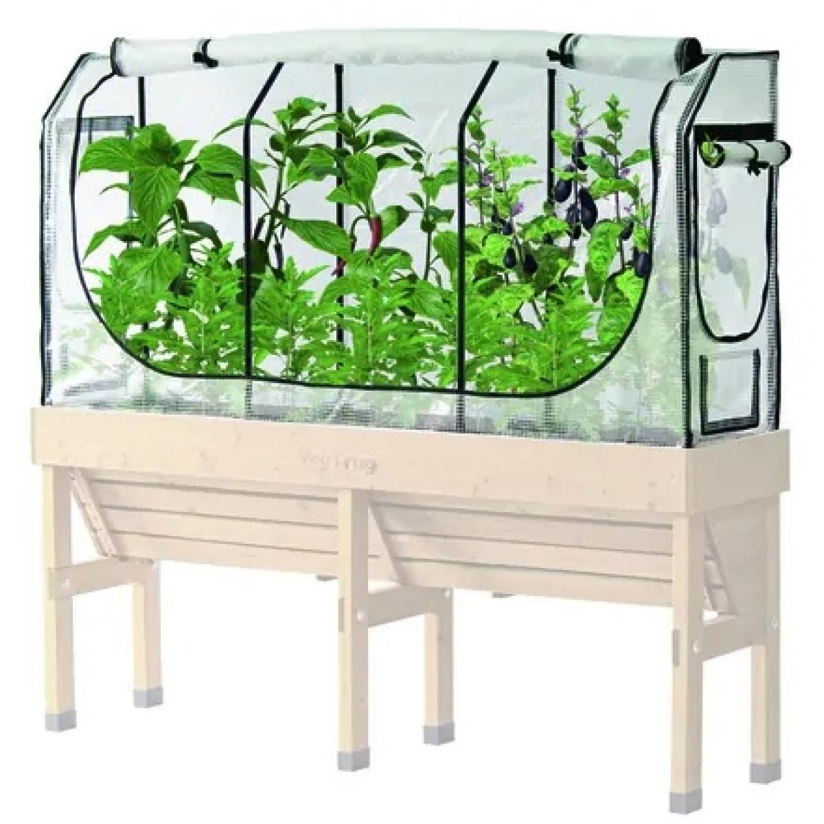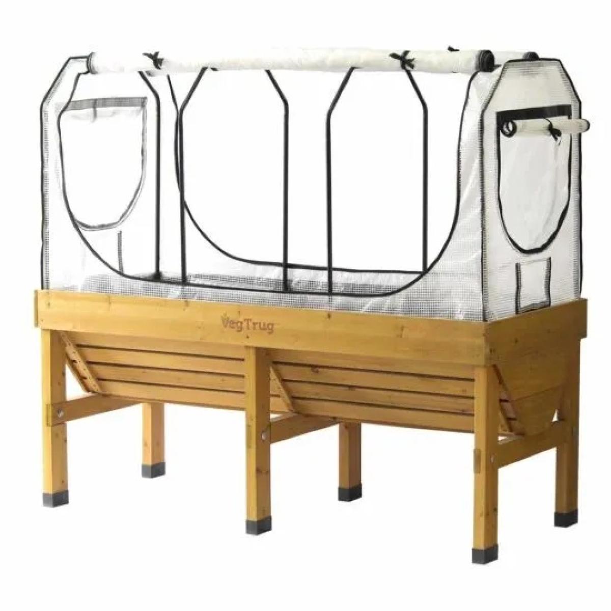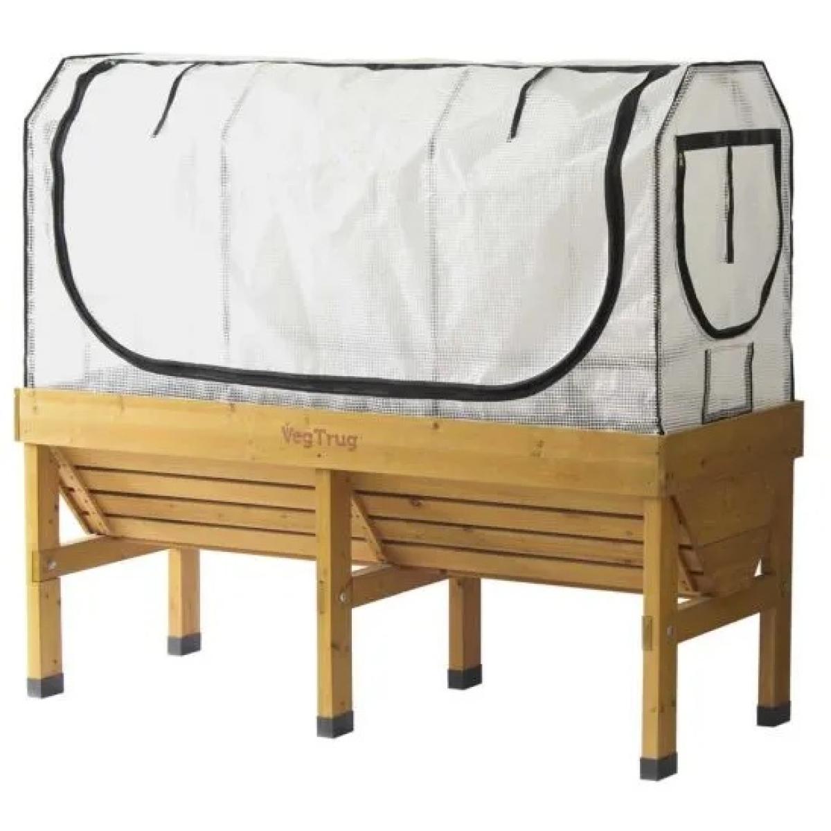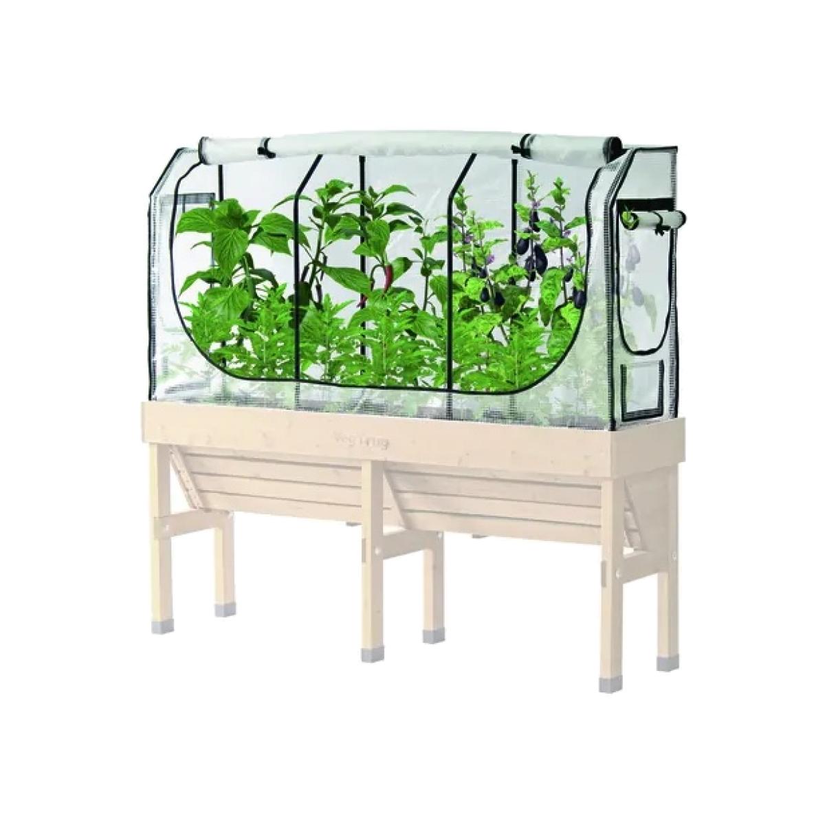TheVegTrug Medium Wall Hugger Raised Planter, Greenhouse Frame & Multi-Cover Set combines a polyethylene greenhouse heat blanket with a micro mesh insect layer in a single cover. Each layer is zipped separately, with wide openings for easy access and maintenance of your crops. The frame is made from a durable, powder-coated steel, while the polyethylene greenhouse cover helps warm your plants in colder months, extending your growing season. Finally, the Micro Mesh layer within prevents insects from landing on and damaging your plants, while still letting them breathe freely. Key Features: Simple, single kit provides the essentials for your growing. Greenhouse layer warms your plants in cold months. Micro Mesh layer protects from insects and pests. Custom fit to the Medium 1.8m Wallhugger Veg Trug Double zip system All fixings included Home Assembly 1 Year Guarantee Dimensions: Height:90cm Width:179.6cm, Depth:41.6cm, Weight:3.18kg, This is the cover and frame only. The planter is not included.