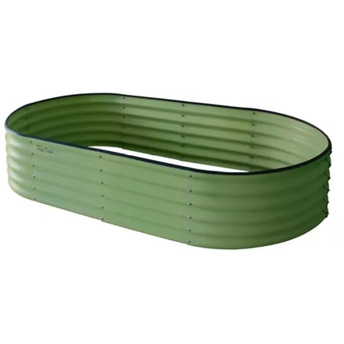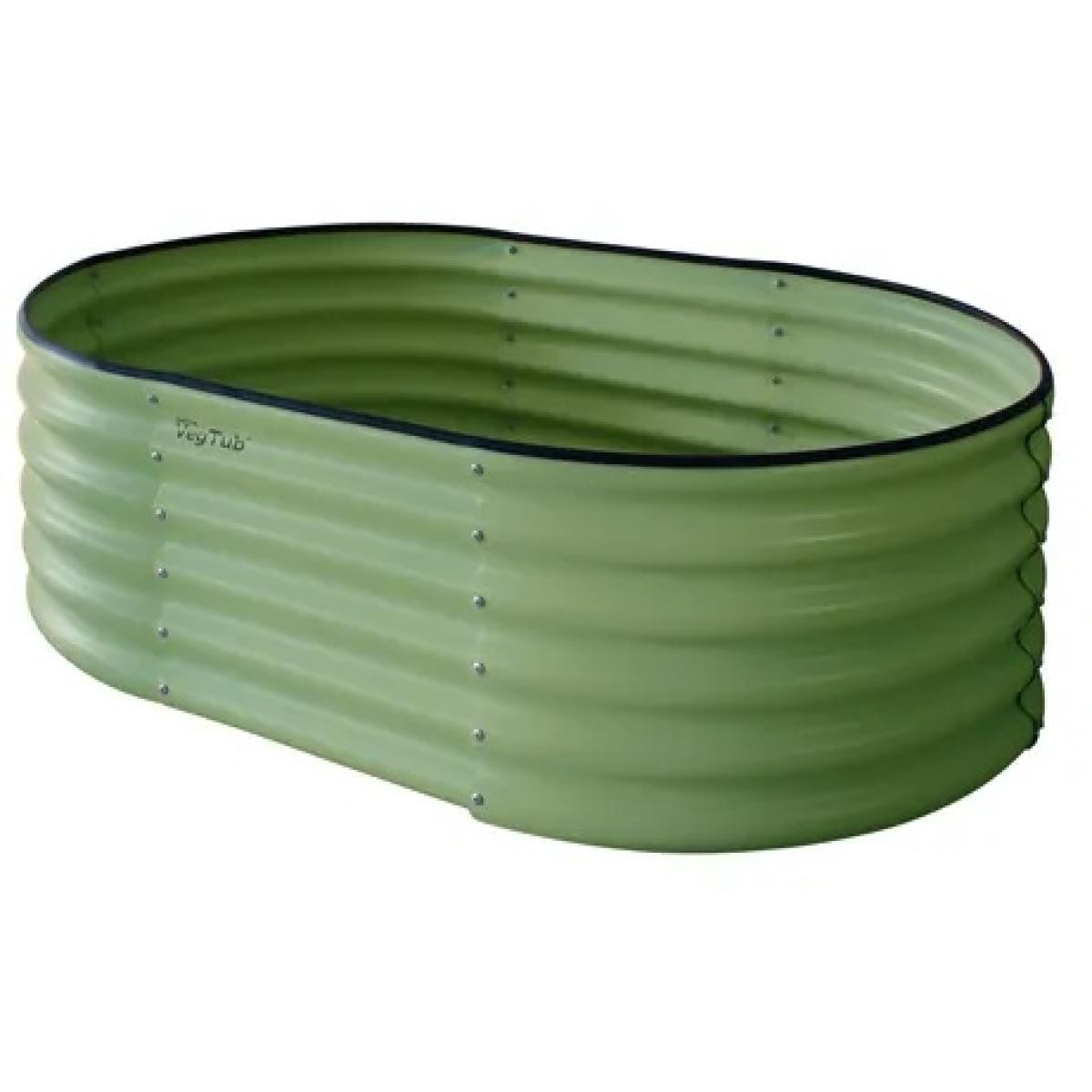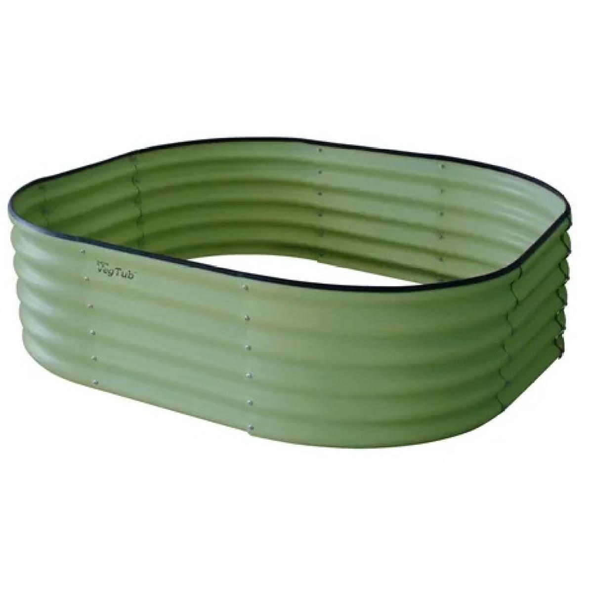 The VegTrug Vegtub Modular Metal Raised Bed Kit in Sage Green corrugated steel planter is a perfect, durable planter for all kinds of growing. With multiple ways to build it, the Veg Tub can fill little plots or big allotments. The extra-tall 45cm height gives you ample depth for long roots in a no-dig bed. This metal raised bed will provide the perfect base at 45 cm high, suitable for any home growing, whether for vegetables, herbs or flowers. It minimises bending and makes weeding easy! You can fill the raised bed with the soil of your choice, allowing you to tailor the growing media to exactly suit your crop. The soil in the raised bed will warm up faster than the soil in the ground, aiding rapid germination. Growing in raised beds also helps to protect plants from pests and reduces competition for water and light from other plants. With double-sided powder coating and entirely stainless steel fittings for next-level toughness, the Veg Tub will weather anything. Key Features: Tool-less assembly Double-sided powder-coating resists rust and corrosion Multiple build configurations available Safety rubber edging supplied Home Assembly Colour - Sage Green 1 Year Guarantee Dimensions: Height:45cm Width:92cm, Depth:92cm, Weight:15.50kg,