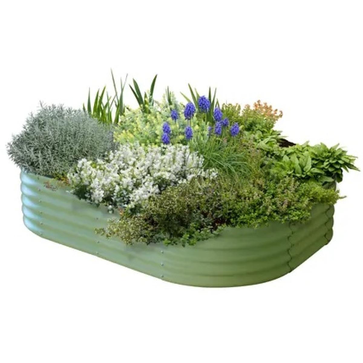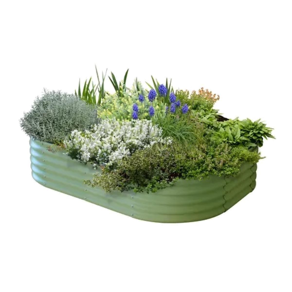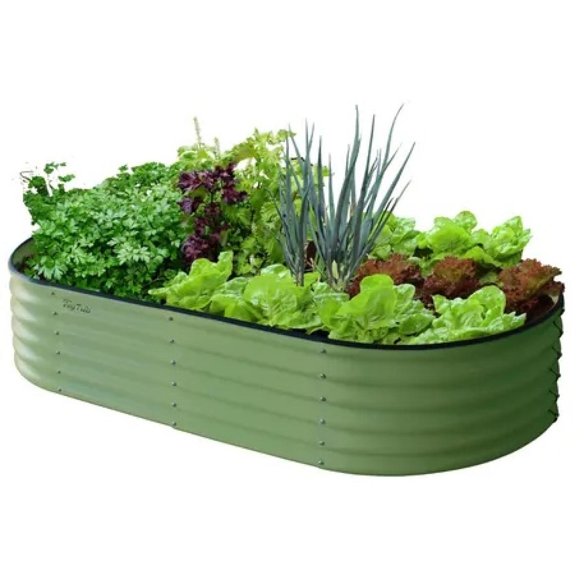 The VegTrug Vegtub Modular Metal Raised Bed Kit in Sage Green corrugated steel planter is a perfect, durable planter for all kinds of growing. With multiple ways to build it, the Veg Tub can fill little plots or big allotments. The extra-tall 45cm height gives you ample depth for long roots in a no-dig bed. This metal raised bed will provide the perfect base at 45 cm high, suitable for any home growing, whether for vegetables, herbs or flowers. It minimises bending and makes weeding easy! You can fill the raised bed with the soil of your choice, allowing you to tailor the growing media to exactly suit your crop. The soil in the raised bed will warm up faster than the soil in the ground, aiding rapid germination. Growing in raised beds also helps to protect plants from pests and reduces competition for water and light from other plants. With double-sided powder coating and entirely stainless steel fittings for next-level toughness, the Veg Tub will weather anything. Key Features: Tool-less assembly Double-sided powder-coating resists rust and corrosion Multiple build configurations available Safety rubber edging supplied Home Assembly Colour - Sage Green 1 Year Guarantee Dimensions: Height:45cm Width:92cm, Depth:92cm, Weight:15.50kg,