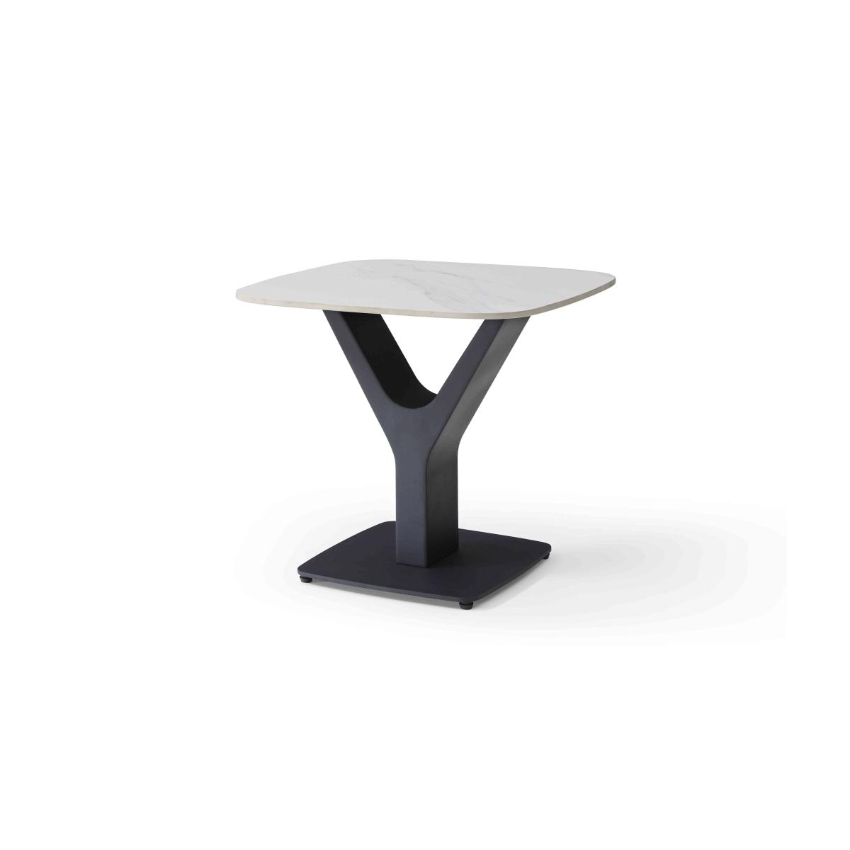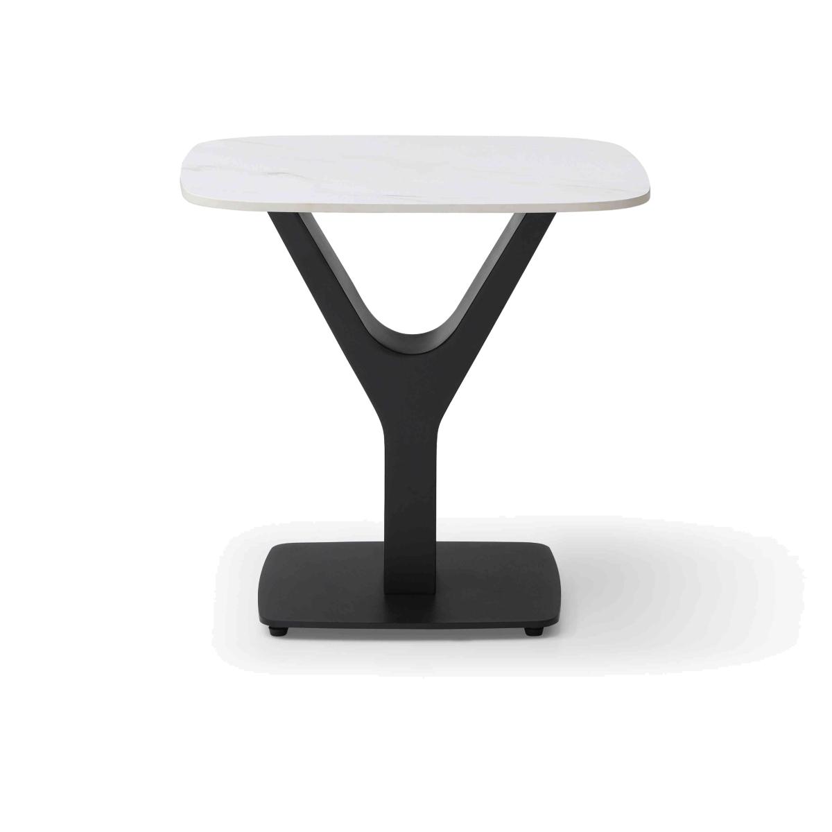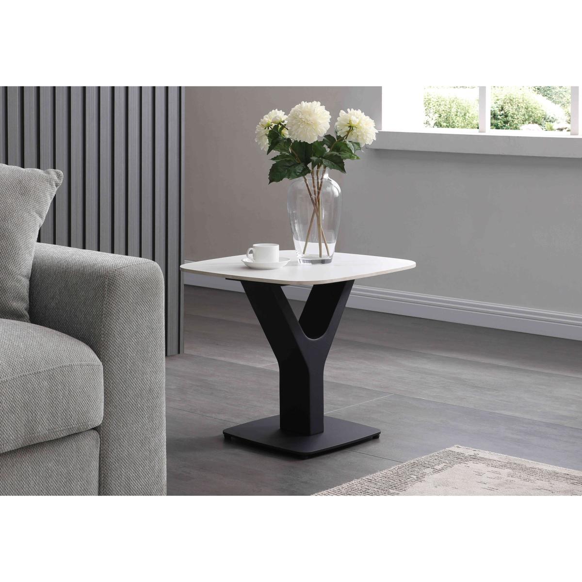 Our Veja range delivers unique modern style that will never go out of fashion. The collection’s handcrafted extending dining table is all-round fabulous – from its showstopping black metal Y-shaped base to its smooth white ceramic finish to the gentle curves of the table top ends. It’s also a wise choice – ceramic is super hardwearing and you’ll love the fact that, open or closed, the table top always displays a perfect and seamless ceramic finish. The Veja range also includes a selection of dining sets and stylish swivel base dining chairs and bar stools upholstered in grey velvet. The Veja range is exclusively available at Furniture Village. As striking as any dining table, our Veja lamp table – a Furniture Village exclusive – is a fabulous fusion of smooth white ceramic and black metal. Why you'll love it A showstopping look for your stylish modern home. Truly striking black metal Y-shaped base. White ceramic top with smooth curved corners. Super-durable finish – ceramic is heat-, scratch- and chip-resistant. Made by hand. Only at Furniture Village. This lamp table is part of our Veja range. What you need to know 12 mm ceramic top. Please note that ceramic is not 100% heatproof. We recommend using coasters and placemats at all times. Easy to care for. Simply wipe with a clean damp cloth. Browse the Veja range for dining sets, dining chairs, occasional tables and more.