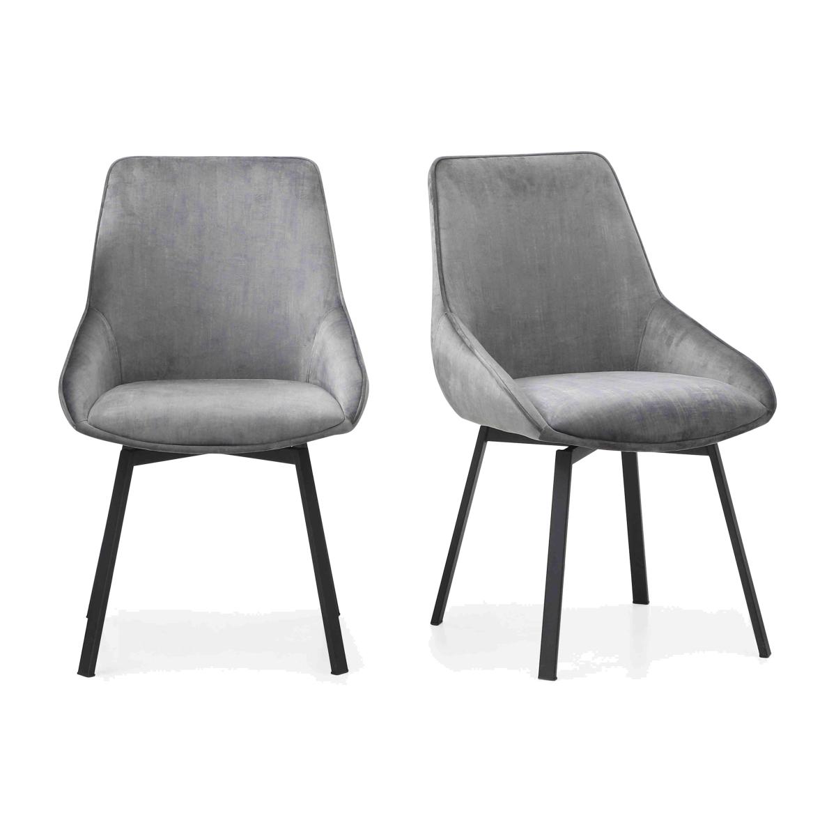 Our Veja range delivers unique modern style that will never go out of fashion. The collection’s handcrafted extending dining table is all-round fabulous – from its showstopping black metal Y-shaped base to its smooth white ceramic finish to the gentle curves of the table top ends. It’s also a wise choice – ceramic is super hardwearing and you’ll love the fact that, open or closed, the table top always displays a perfect and seamless ceramic finish. The Veja range also includes a selection of dining sets and stylish swivel base dining chairs and bar stools upholstered in grey velvet. The Veja range is exclusively available at Furniture Village. Thanks to their comfortable curves and swivel bases, this pair of swivel dining chairs are just made for lingering get-togethers. Why you'll love it A sophisticated look for your stylish modern home. Swivel bases make these dining chairs even more comfortable. Curved and cushioned seats are upholstered in grey velvet. Matt-finish black metal legs. Also available in sets of 4 and 6 dining chairs. Only at Furniture Village. This pair of swivel dining chairs is part of our Veja range. What you need to know Metal frame and legs. Cushioned with foam. Pair with a Veja range dining table for a very on-trend look.
