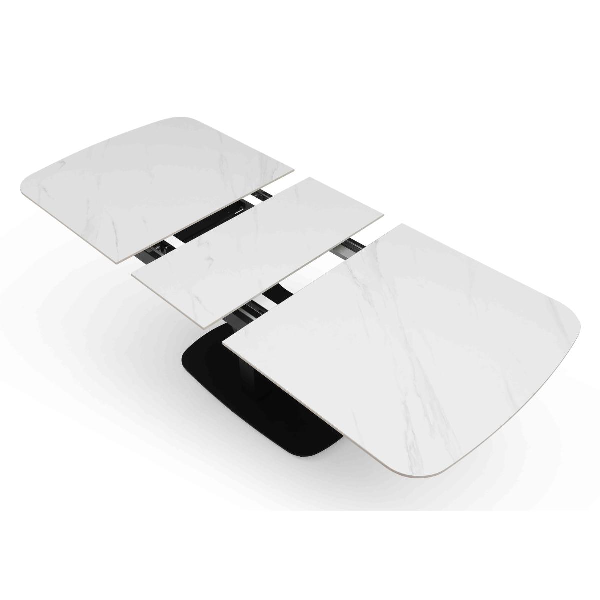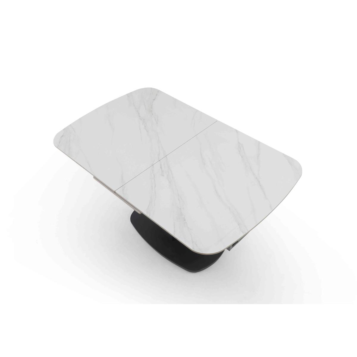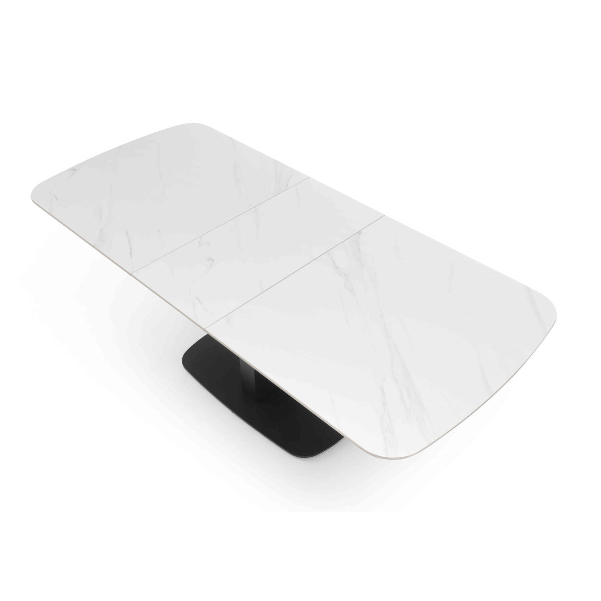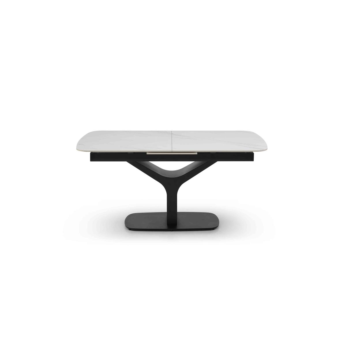 Our Veja range delivers unique modern style that will never go out of fashion. The collection’s handcrafted extending dining table is all-round fabulous – from its showstopping black metal Y-shaped base to its smooth white ceramic finish to the gentle curves of the table top ends. It’s also a wise choice – ceramic is super hardwearing and you’ll love the fact that, open or closed, the table top always displays a perfect and seamless ceramic finish. The Veja range also includes a selection of dining sets and stylish swivel base dining chairs and bar stools upholstered in grey velvet. The Veja range is exclusively available at Furniture Village. Bold lines and ingenious curves make our Veja dining set a one of a kind. The ceramic-topped extending dining table has a unique Y-shaped base. With six chairs. Why you'll love it A showstopping look for your stylish modern home. Handmade dining table has a truly striking black metal Y-shaped base. White ceramic top has smooth curved ends. Super-durable finish – ceramic is heat-, scratch- and chip-resistant. Easy to extend – the centre leaf simply pops up into place. Closed or extended, the ceramic pattern continues seamlessly across the table top. With 4 swivel dining chairs with velvet upholstery in a choice of colours. Curved and cushioned seats and matt-finish black metal legs. Only at Furniture Village. This dining set is part of our Veja range. What you need to know Chairs have metal frames and legs, and are cushioned with foam. Dining table seats 4 closed and 6 when extended. Top is made with 12 mm ceramic. This dining table is very heavy. Once in place, it will be difficult to reposition. Please take care if you have to move it. Please note that ceramic is not 100% heatproof. We recommend using coasters and placemats at all times. Easy to care for. Simply wipe with a clean damp cloth. Browse the Veja range for dining sets, dining chairs, occasional tables and more.