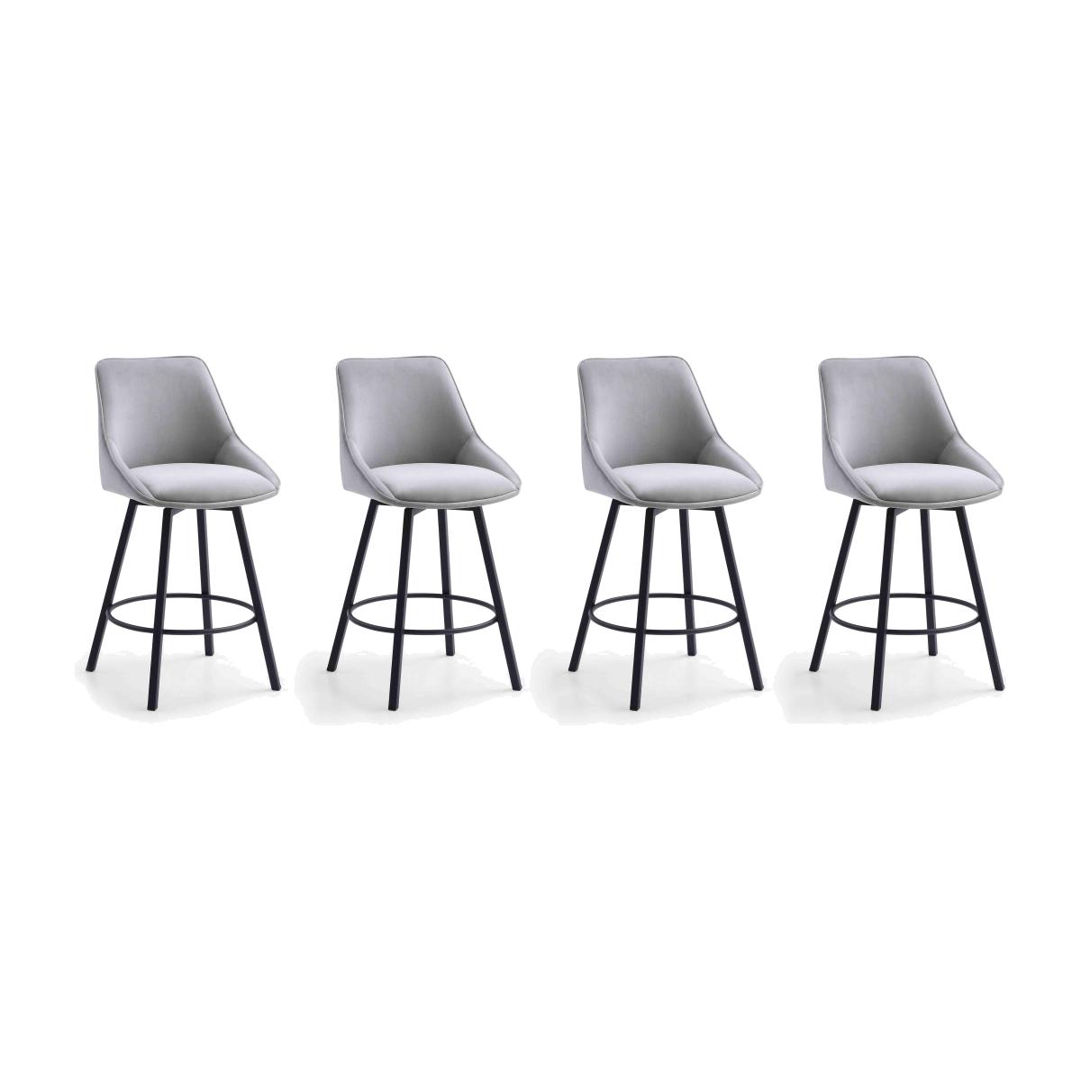 Our Veja range delivers unique modern style that will never go out of fashion. The collection’s handcrafted extending dining table is all-round fabulous – from its showstopping black metal Y-shaped base to its smooth white ceramic finish to the gentle curves of the table top ends. It’s also a wise choice – ceramic is super hardwearing and you’ll love the fact that, open or closed, the table top always displays a perfect and seamless ceramic finish. The Veja range also includes a selection of dining sets and stylish swivel base dining chairs and bar stools upholstered in grey velvet. The Veja range is exclusively available at Furniture Village. Inspired by our Veja dining chairs, this set of four swivel bar stools instantly turns a casual bar table dining space into something far more stylish. Why you'll love it A sophisticated look for your stylish modern home. Swivel base makes this bar stool even more comfortable. Curved and cushioned seats are upholstered in grey velvet. Matt-finish black metal legs and footrests. Also available individually. Only at Furniture Village. This set of 4 swivel bar stools is part of our Veja range. What you need to know Metal frame and legs. Cushioned with foam.