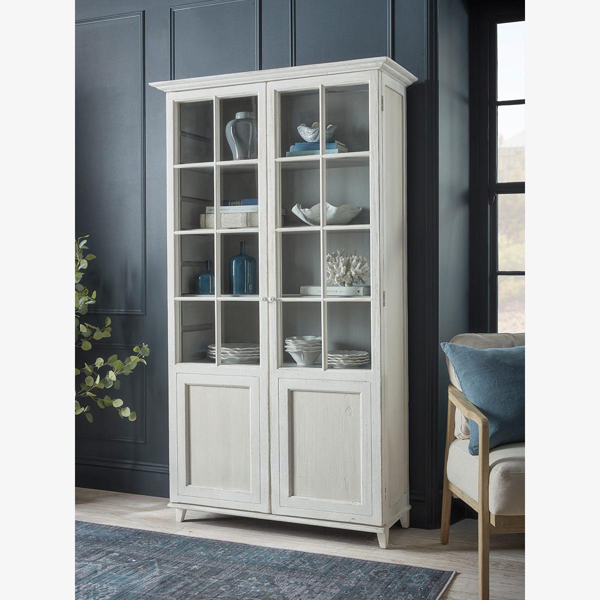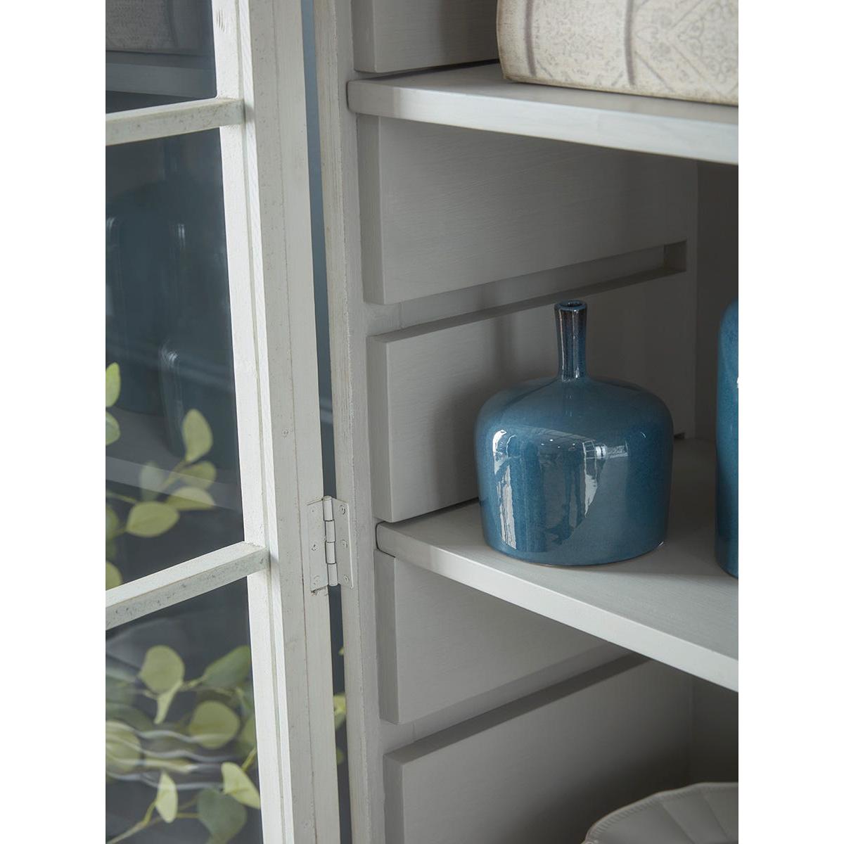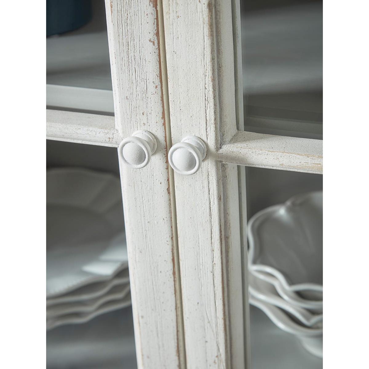 Our charming Vejle display cabinet has all the elegance of antique French country furniture. The soft painted finish has been delicately aged to create a piece that will sit confidently in a relaxed scheme. With the bottom third of the double doors solid and the top glazed, the cabinet presents versatile options for displaying favourite pieces and concealing more utilitarian items.