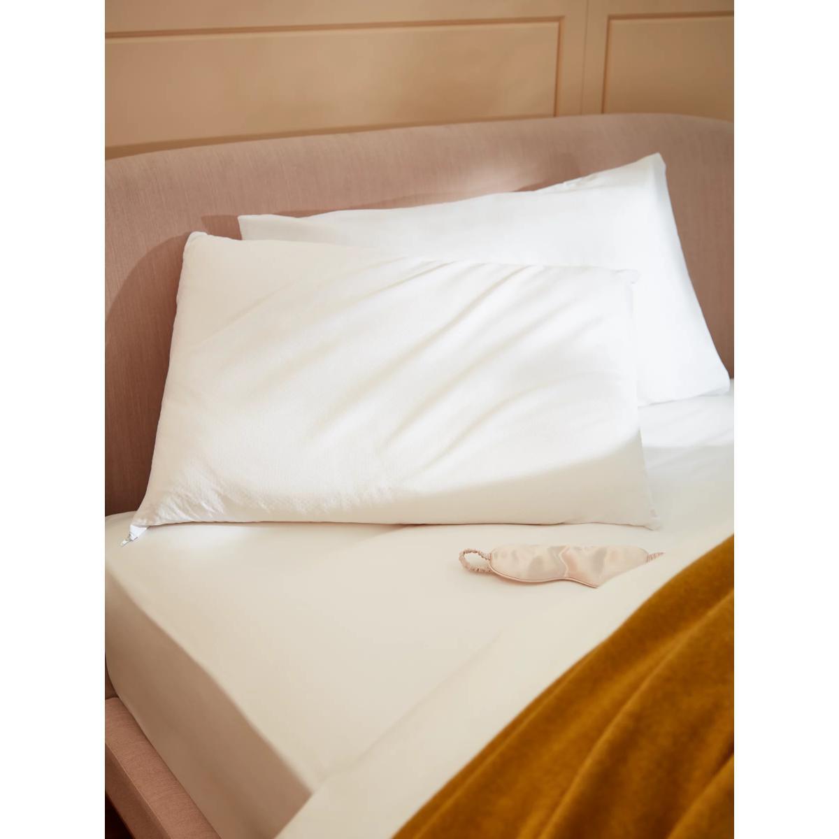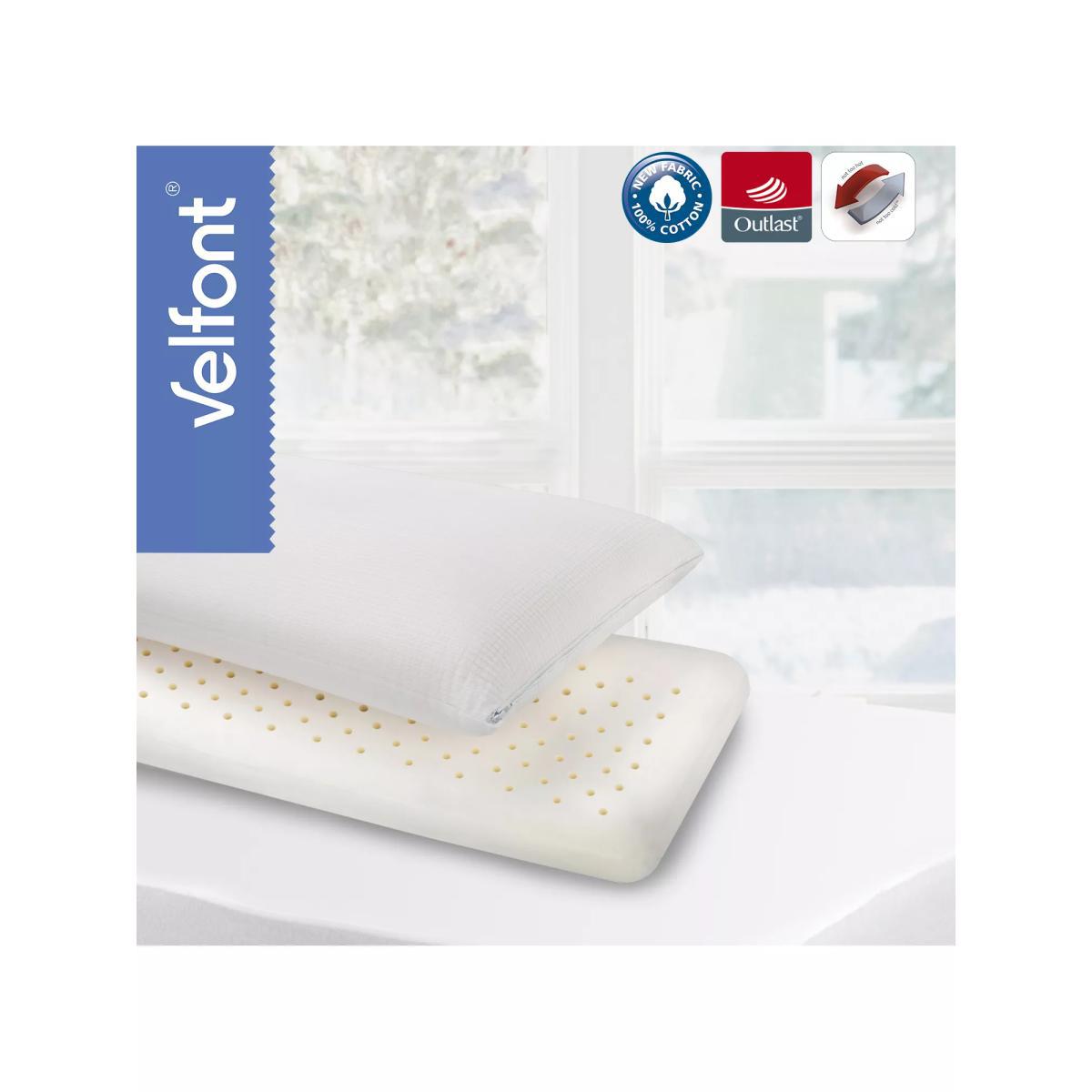 Good for hot sleepers Perfect for those who sleep on their back or side, this pillow helps keep your spine aligned for a comfortable and undisturbed night's sleep. This Velfont pillow is designed with a unique Outlast® pure cotton cover that has temperature regulating properties to help you sleep comfortably through the night. The filling is made from high density polyurethane for medium to firm support. Temperature Regulating Outlast® material was originally developed for NASA to balance temperature changes. It reduces moisture, helping to keep your body temperature regulated throughout the night so that you have a comfortable and breathable night's sleep. It will adapt to different body temperatures so that you experience an individual comfort zone while you sleep. 100% Cotton The Outlast® cover is made from pure, natural cotton that's sumptuously soft and highly absorbent. Designed to absorb, store and release heat in order to achieve an optimal temperature, it is best paired with memory foam mattresses and pillows.