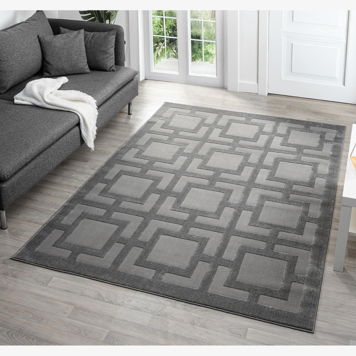 Add a modern touch to your home with the Vellure Modern Indoor Rug, expertly designed for both style and practicality. Made from a 50 polypropylene and 50 polyester blend, this rug delivers the perfect balance of softness and durability for everyday living. The 11mm embossed cut-shrink pile not only offers a luxurious underfoot feel, but also creates a subtle 3D texture with a refined metallic sheen, giving your space a polished, designer look. A sturdy natural jute backing ensures added stability and keeps the rug securely in place. Available in Three elegant colours Anthracite -Grey -Cream and four exclusive designs - GRID, MARBLE, MAZE, and PYRAMID, the Vellure rug enhances any modern or contemporary living room, bedroom, or hallway. Its also easy to maintain, making it a perfect choice for busy homes. Vellure Living Room Modern Area Rug Embossed Sheen Maze Grey 120x170 cm