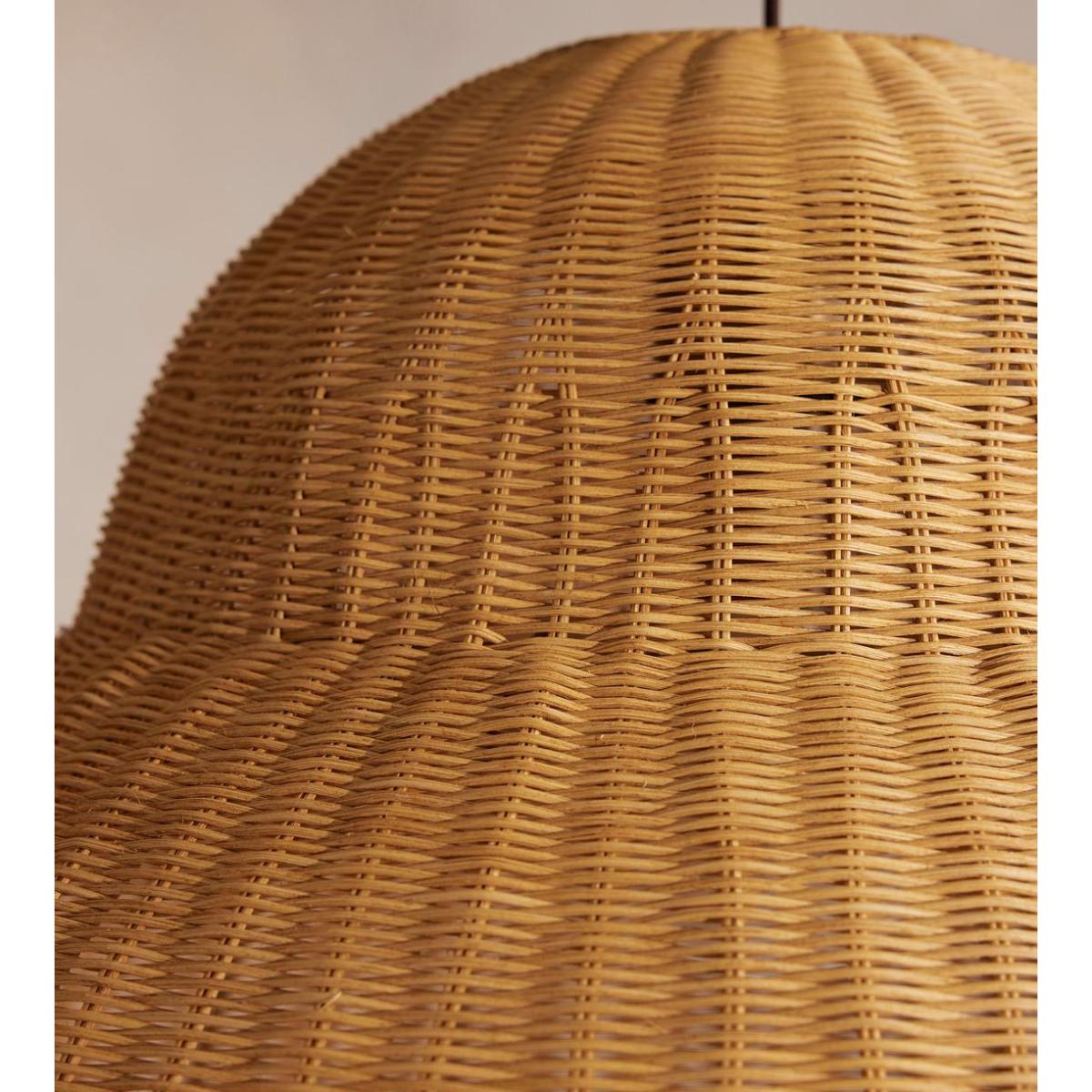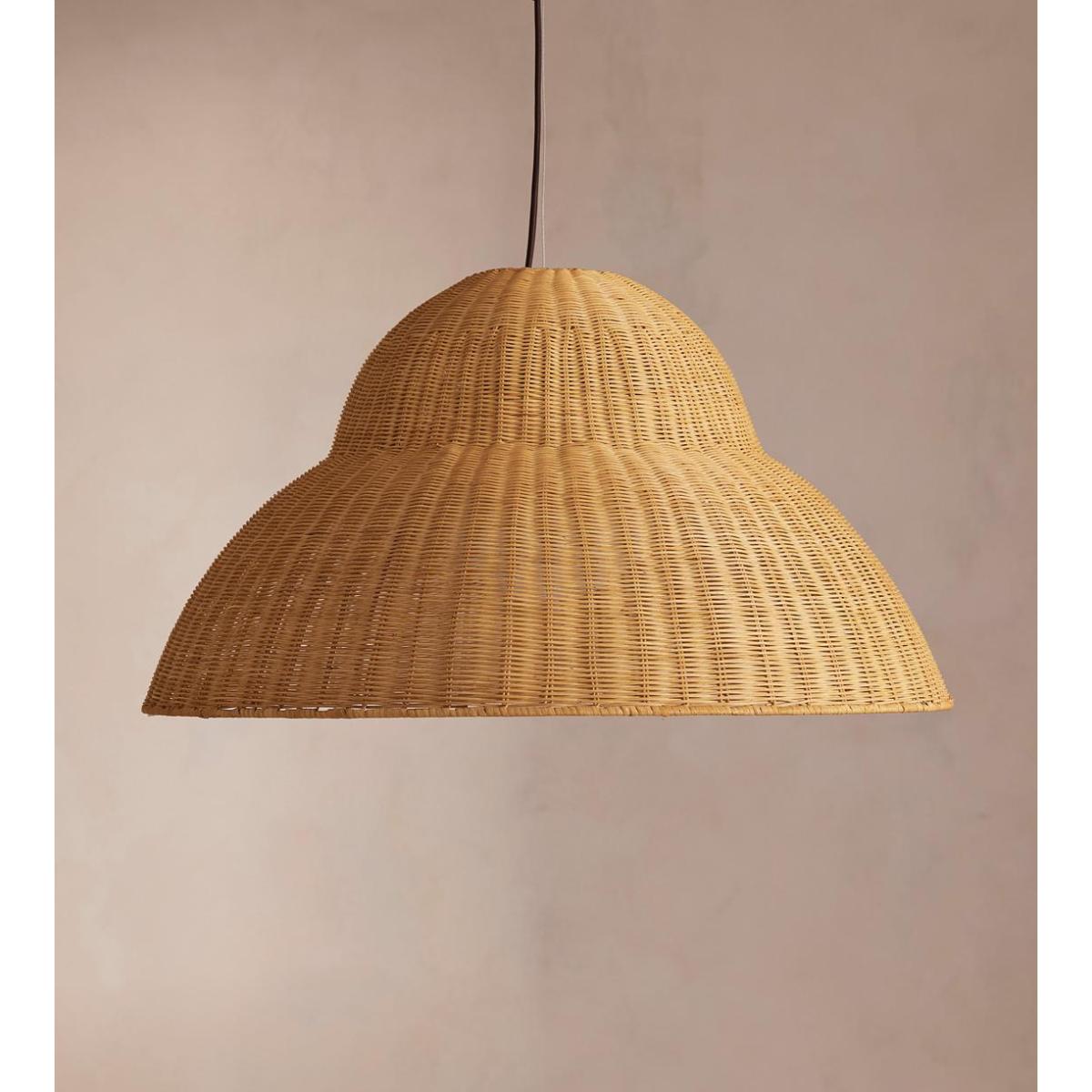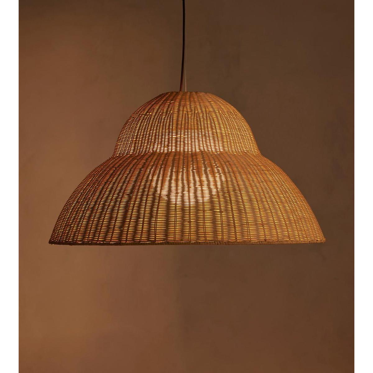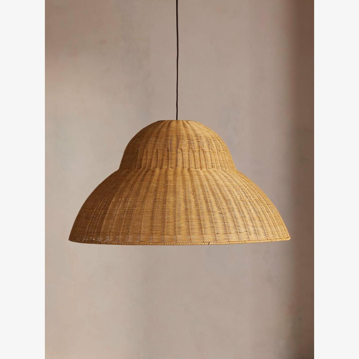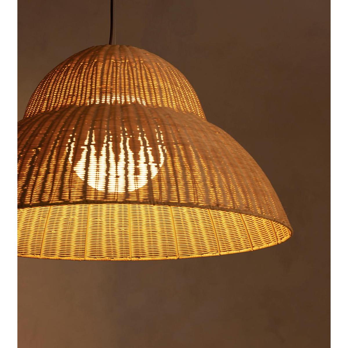 Echo the natural material finishes of our coastal Houses with our Velma pendant. This tiered design is inspired by Little Beach House Malibu, handwoven from a mid-tone rattan with a large globe inside to diffuse light throughout the room. Rattan ceiling lampshade Tiered design Handwoven from mid-tone rattan Large globe inside Inspired by Little Beach House Malibu