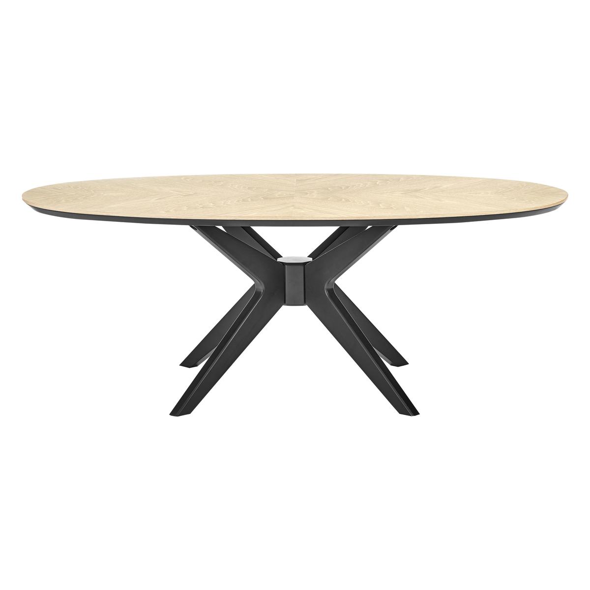 The interplay of geometric shapes and bold lines makes the Velodrome oval coffee table one of kind. Perfect for a modern, minimal living room, it features an unusual oval-shaped top with a striking geometric American white oak veneer wood grain patterning. The table top is set on a solid European beech wood starburst-style base which is finished in an on trend gunmetal grey. Sleek and low, this coffee table offers a spacious surface for everyday living room items or, if you prefer, a more studied arrangement of coffee table books and interesting objects. The Velodrome oval coffee table is part of the Velodrome range of living and dining pieces. If you love the unusual oval shaped table top because it’s just a little bit different, you’ll definitely appreciate the Velodrome console table. Designed to fit neatly against a wall, this stunning and stylish table has a half-oval shaped top.