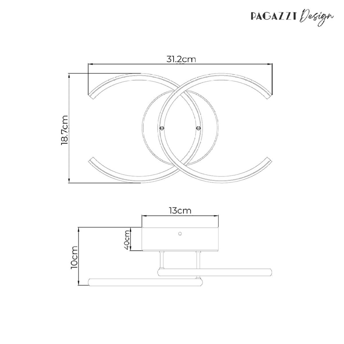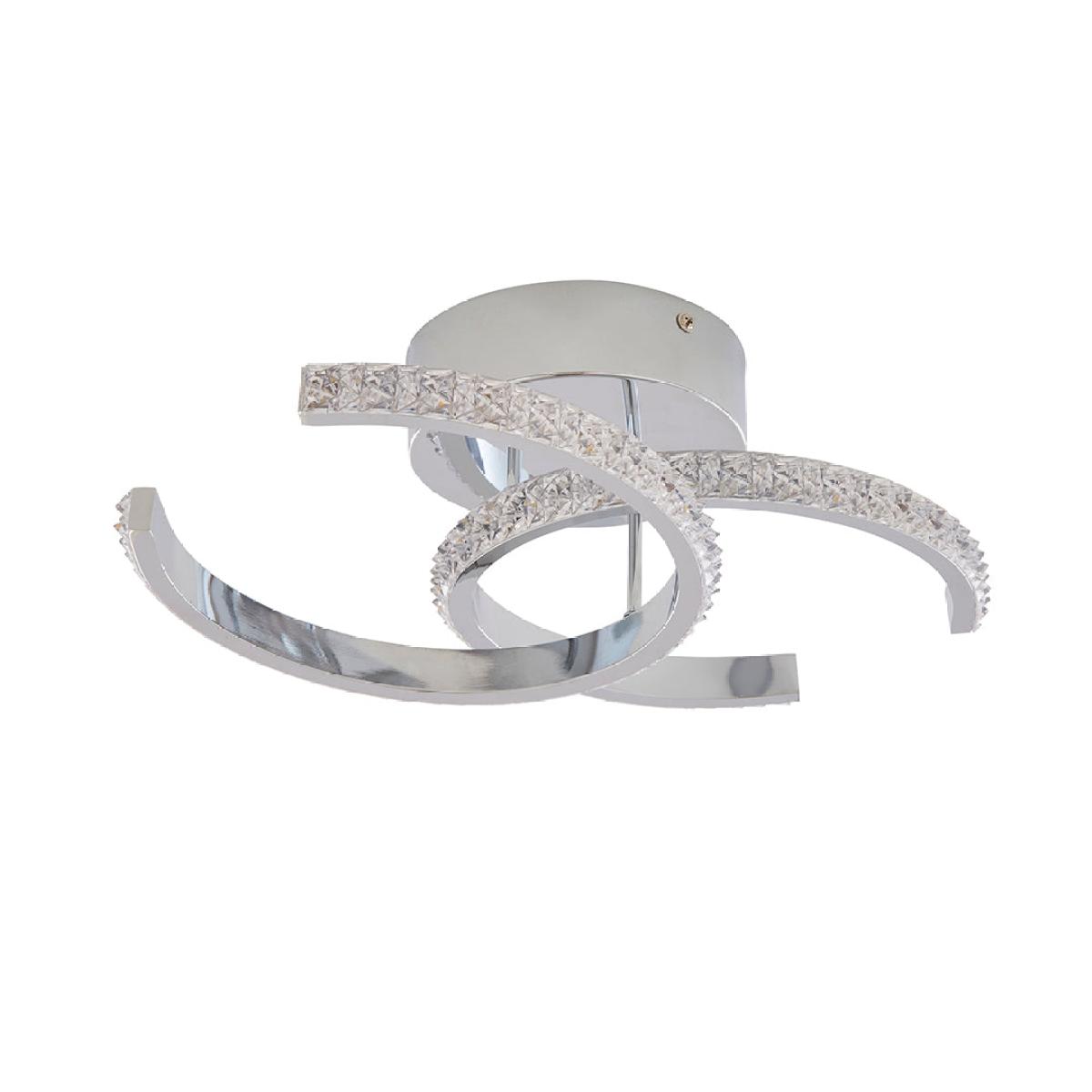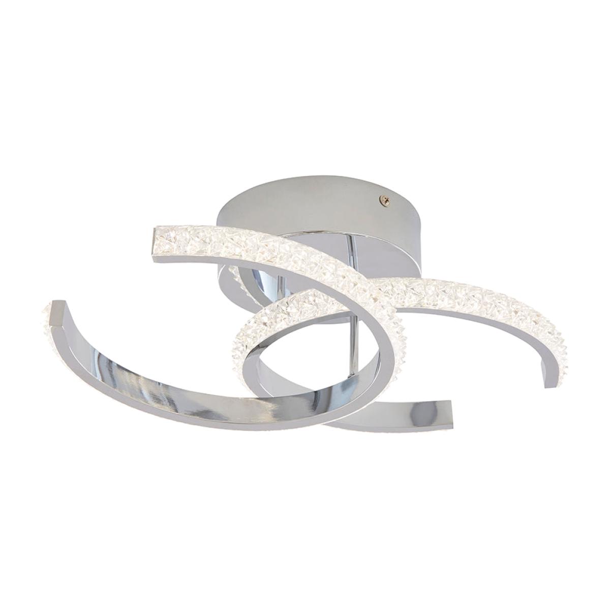 Adds a touch of modern luxury to any space. This stunning flush ceiling fitting features two elegantly crossed, horseshoe-shaped LED arcs finished in polished chrome plating. The integrated LEDs are encased within crystal-style moulded acrylic covers, producing a cool white light (4022. K) that sparkles beautifully when lit — perfect for creating a statement in living rooms, bedrooms, or hallways. Delivering 984 lumens of illumination, the Veloria combines high performance with refined style. Designed with a baton fixing for secure installation, this fixture is both energy-efficient and visually captivating.