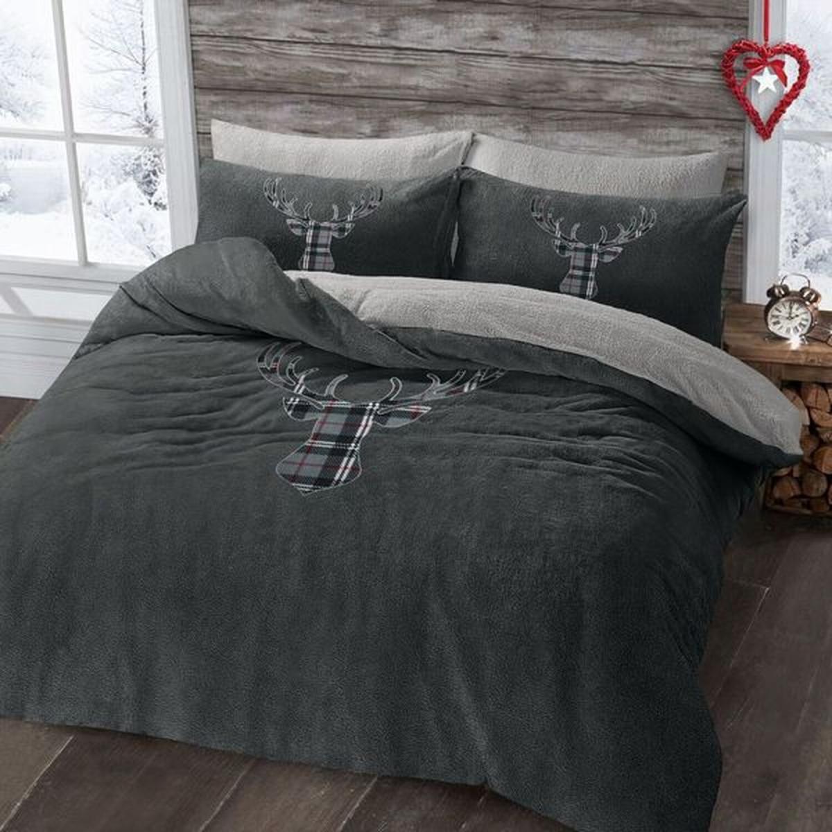 Elevate your bedroom decor with the VELOSSO Stag Head Teddy Soft Cosy Fleece Duvet Set, a harmonious blend of rustic charm and unmatched comfort. Crafted with meticulous attention to detail, this bedding ensemble brings warmth and style to your sleep sanctuary. Made from 100% easy-care teddy bear fleece, the duvet set provides an indulgent super soft touch that envelops you in luxury. The plush polyester fibres ensure a warm and inviting embrace, perfect for the colder winter months. Featuring an exquisite stag head design, this set captures the essence of nature's elegance and adds a touch of wilderness to your space. The button closing not only enhances its appearance but also secures your duvet in place with finesse. Designed for convenience, the set is machine washable, allowing for effortless upkeep while maintaining its pristine quality. Available in single, double, king, and super king sizes, the set includes a duvet cover and pillowcases, ensuring a seamless fit for various bed dimensions. Immerse yourself in the comfort and sophistication of the VELOSSO Stag Head Teddy Soft Cosy Fleece Duvet Set. Transform your bedroom into a haven of relaxation and style, where nature's beauty meets cosy luxury.