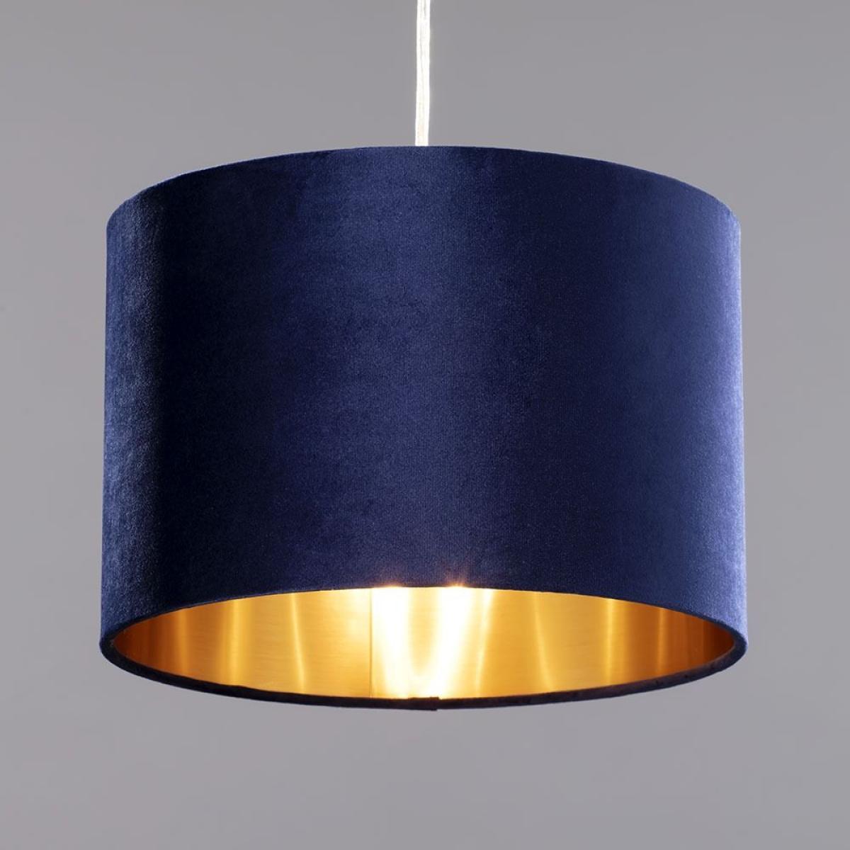 The Velvet 30cm Shade in Navy and Brass adds a luxurious look to your home’s interior lighting arrangements. Finished in navy, the velvety shade provides your room with a glamorous sheen, creating a rich, bold atmosphere. The brass lining on the inside reflects the light and projects a warm glow into your room, with a more relaxed, soothing feeling. With its easy to fit functionality, this shade can be easily fit to any pre-existing fitting, perfect for redecorating.