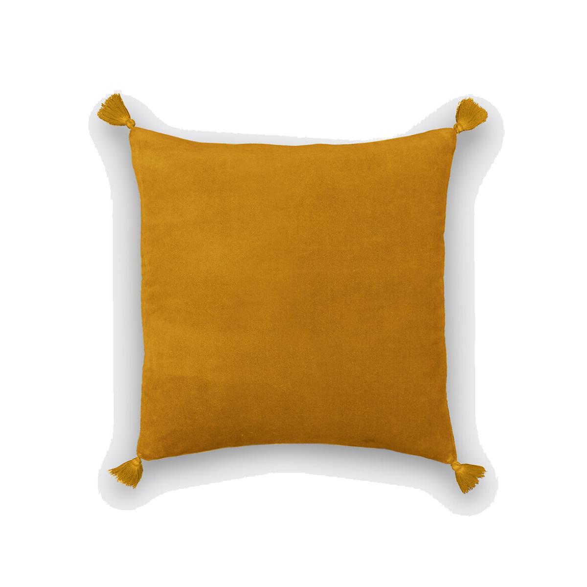 The Velvet cushion cover combines soft plushness with charm and elegance in a range of very current colours finished with light golden pompoms.