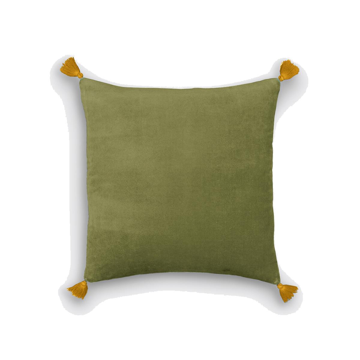The Velvet cushion cover combines soft plushness with charm and elegance in a range of very current colours finished with light golden pompoms.