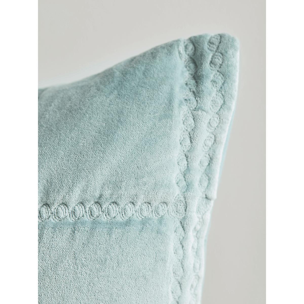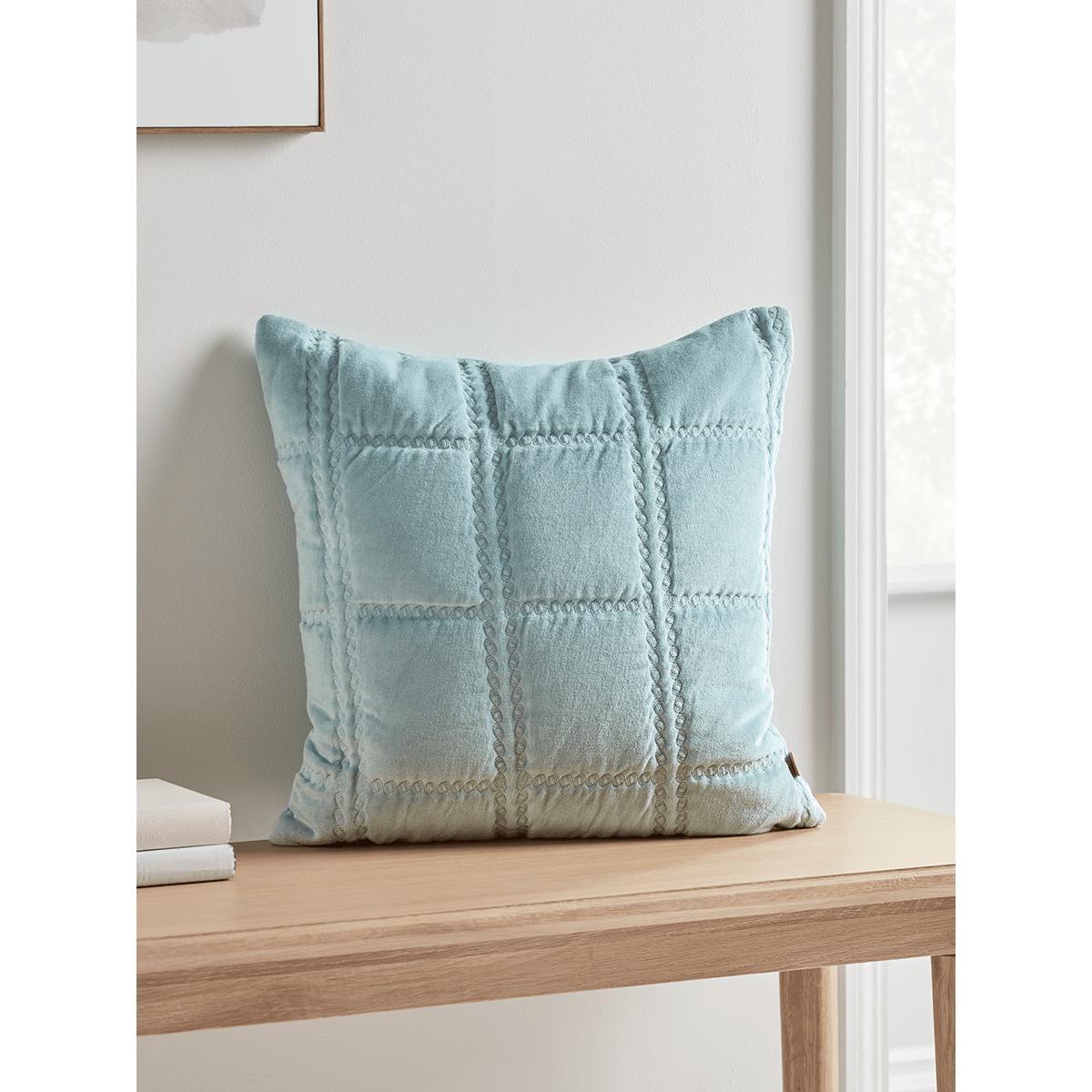 Beautifully embroidered to create a plump, quilted effect and covered all over in luxurious cotton velvet, our Velvet & Cotton Cushion in soft blue will add a dimension of warmth and cosiness to your living space, whether it’s used as a throw pillow, or to snuggle up with on the sofa. Also available in. Soft grey.