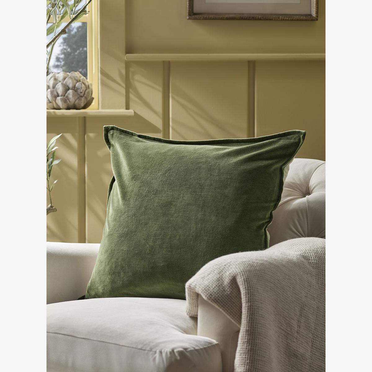 Velvet & Cotton Linen Large Square Cushion - Moss Green