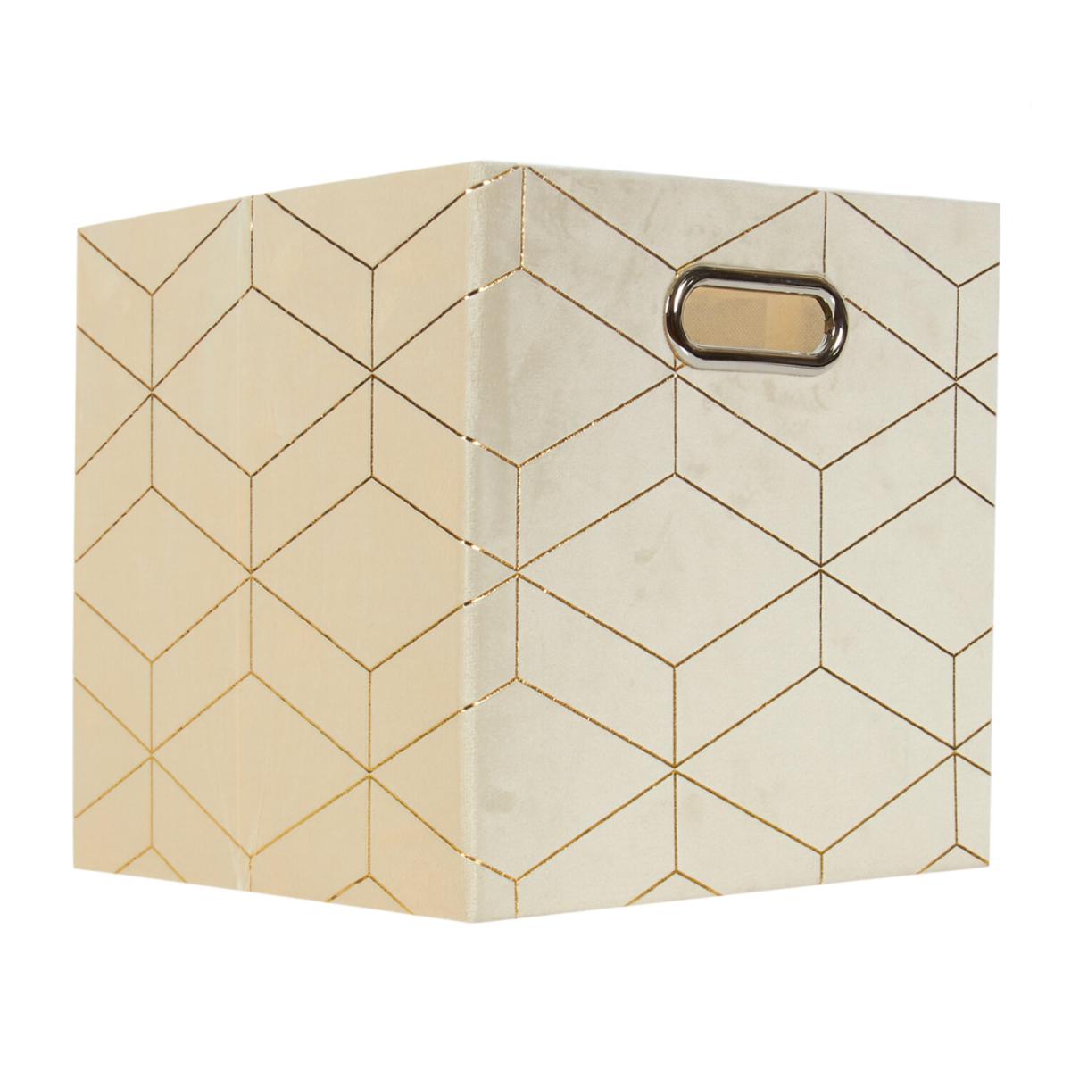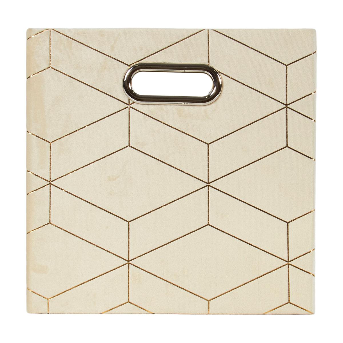 The Velvet & Metallic Geo Storage Cube is available in a choice of gorgeous colourways with elegant glistening detail. Featuring a trendy geometric design in a metallic overlay with a velvet-effect body, this storage cube will neatly slip onto shelves and into corners of your home to help you keep the rooms tidy and stylish.