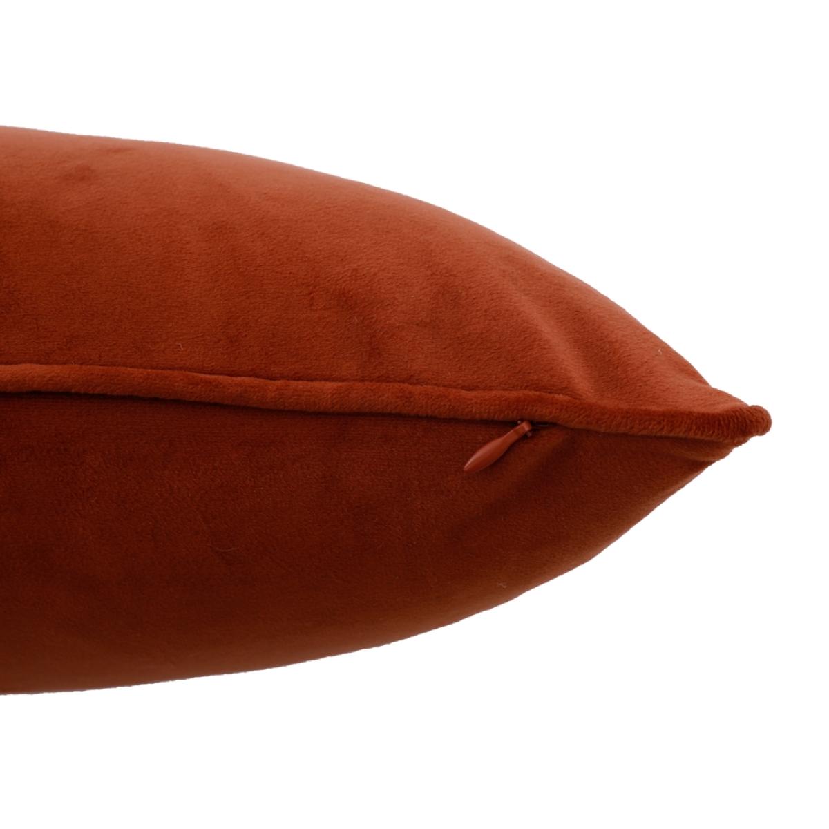 Let's cosy up the home. This sumptuous velvet bolster cushion will bring comfort to your sofa or add texture to your bed. Its double-sided with a smart piped edging. The cushion's soft faux velvet will add a rich layer of warmth to your sofa, making it feel snug and inviting. Just what you need on those chillier evenings. Its plain design is ideal if your room is already filled with patterns or you just prefer an uncomplicated look. Finished in a rich rust, it is sure to add a splash of colour to your space.
