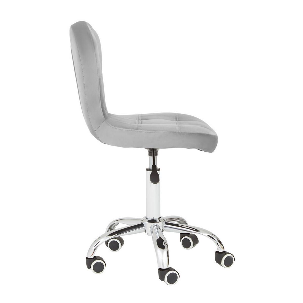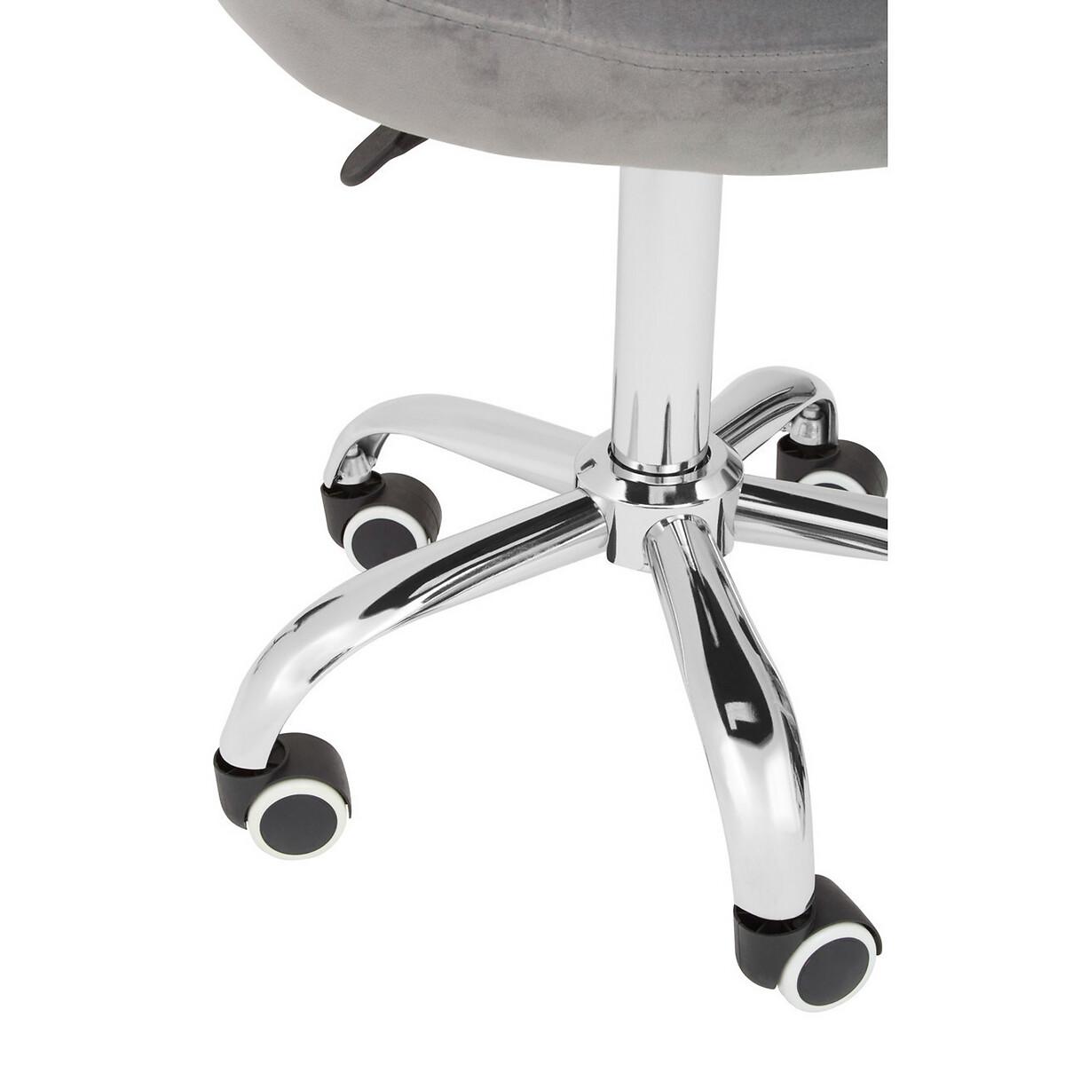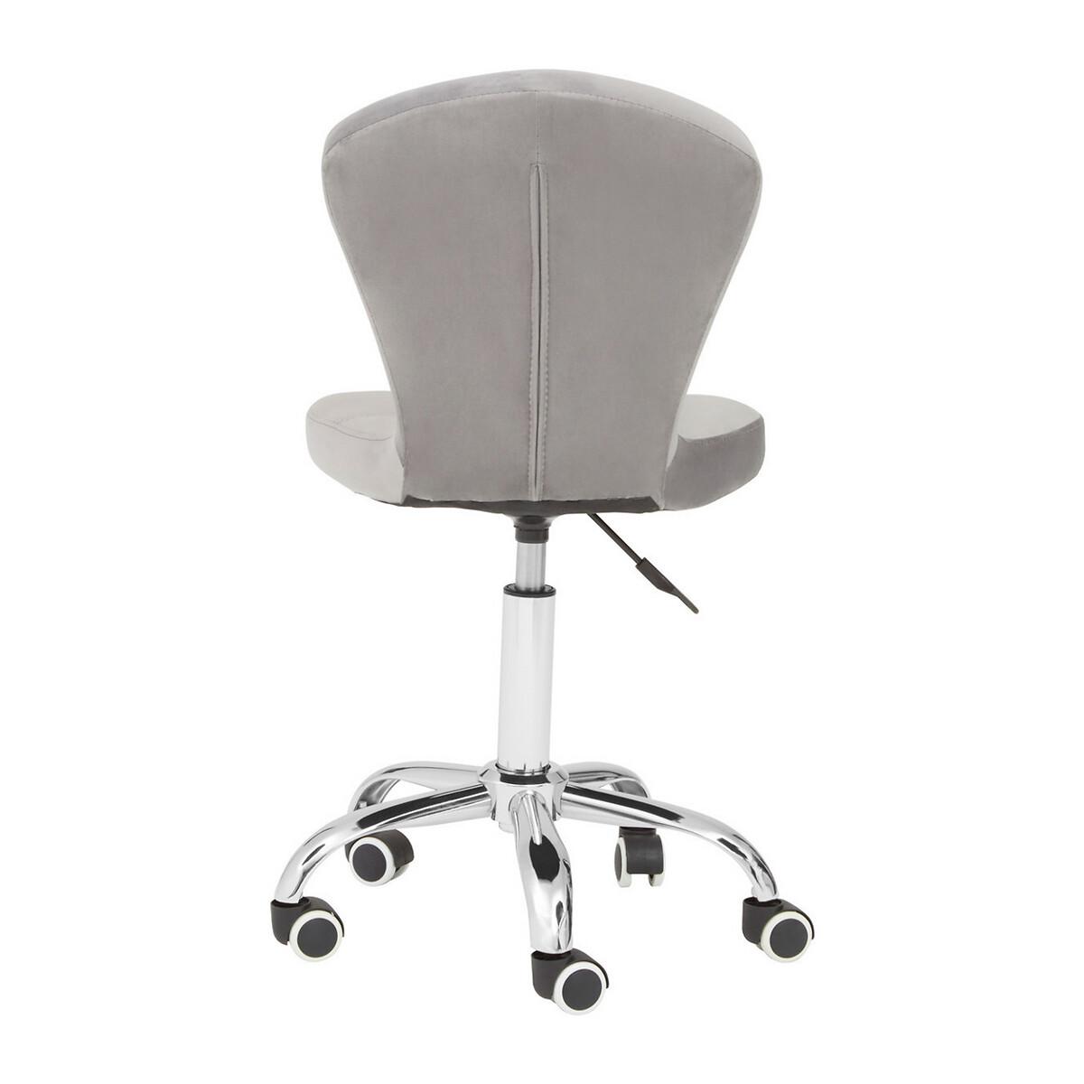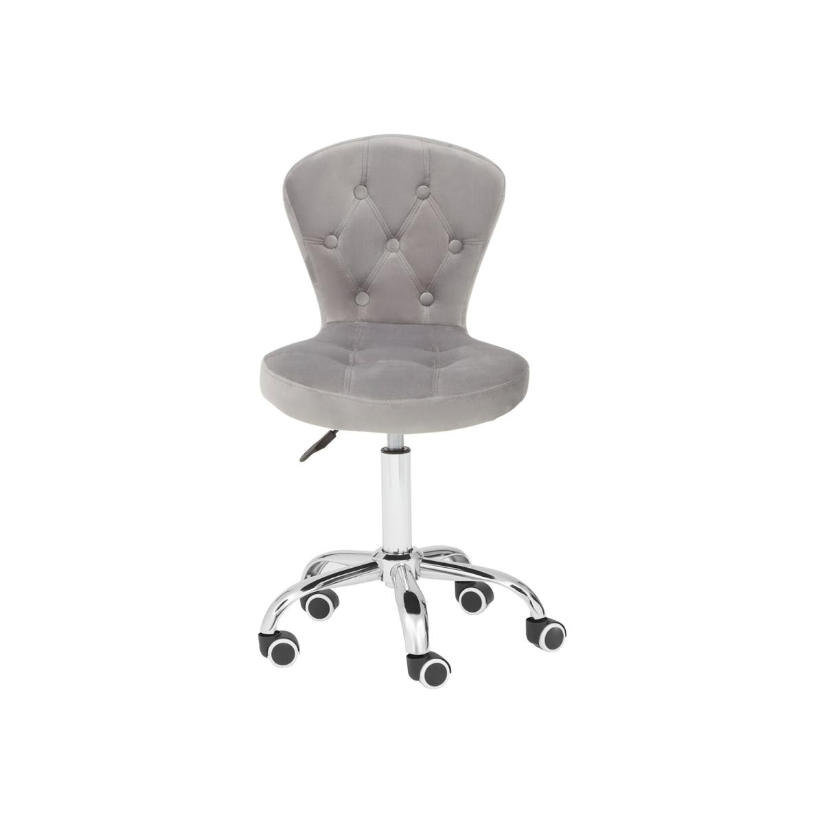 I love this office chair for its combination of comfort and style, particularly the plush velvet finish with button detailing that adds a touch of sophistication. Its neutral grey shade makes it versatile enough for modern, minimalist, or even vintage-inspired interiors. The chrome base lends a contemporary edge, making it suitable for dressing up a home office or a stylish workspace. To style around it, consider pairing with pastel or bold coloured accessories for contrast, or keep the palette neutral for a sleek, cohesive look. Practical tips include adding a comfortable cushion for prolonged use and integrating plants or decorative objects nearby to create an inviting, functional workspace.