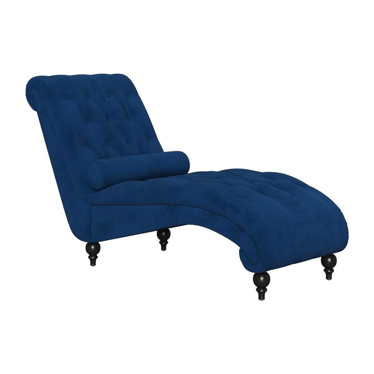 Velvet Button-tufted Chaise Lounge with Lumbar Pillow - Blue