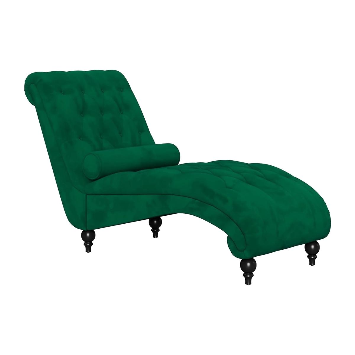 Velvet Button-tufted Chaise Lounge with Lumbar Pillow - Green