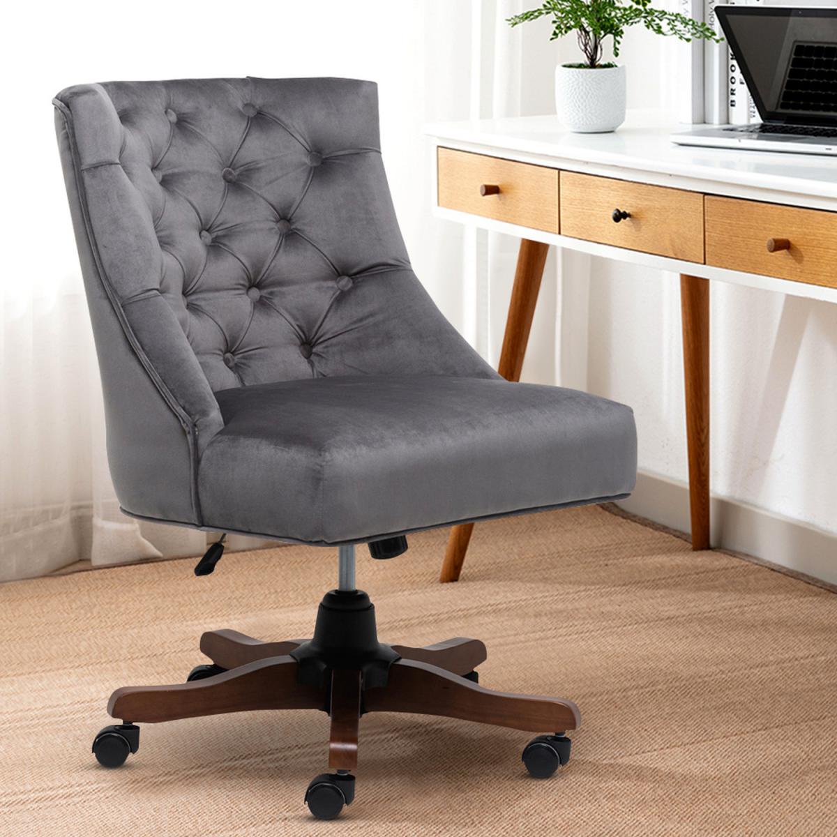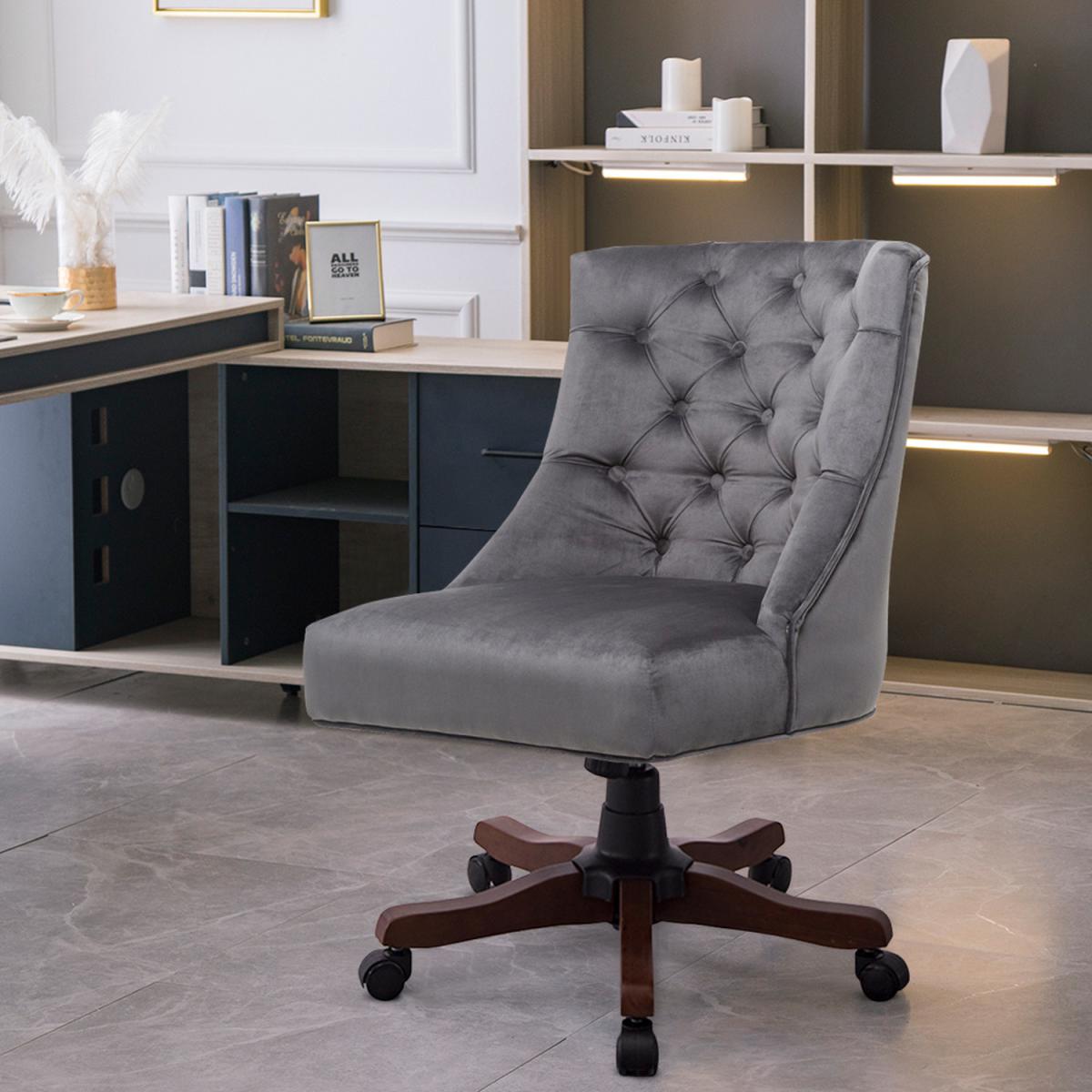 Our chair comes in a comfortable velvet fabric, seat with soft sponge infilling and thick padded cushion offering added comfort. Thick padded seat and durable medium-back with ergonomic modern design. The chair gives a comfortable feeling to your waist while sitting, which helps to keep your back supported. There are 5 pulleys at the bottom of the legs for easy movement.chrome base, it will ensure the stability to the seat, make it more sturdy and safety. Luxury and fashion office chair is easy to adjust height accord to table height relax your hip, meet your gaming, office and learning needs. Flat packaging, with assembly instructions, easy to assemble. Perfect for home, office, bedroom, hallway, salon, etc.