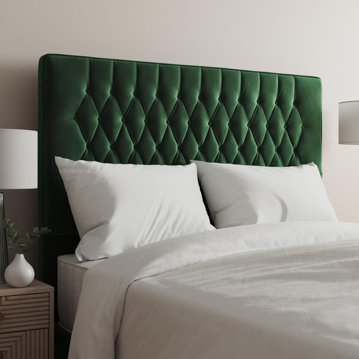 The green velvet Chesterfield headboard is a fantastic statement piece that adds luxurious texture and colour to a bedroom. I love how its rich hue can anchor both neutral and bold décor schemes, offering versatility in styling. It works particularly well in classic, boutique hotel-inspired interiors, or modern spaces looking for a touch of sophisticated glamour. To style around it, opt for minimal bedding to let the headboard shine, and consider pairing with metallic accents or deep, moody tones for a cohesive look. Practical tips include ensuring the bed is well-centred with symmetrical bedside tables and soft lighting to highlight the opulent velvet finish without overpowering the space.