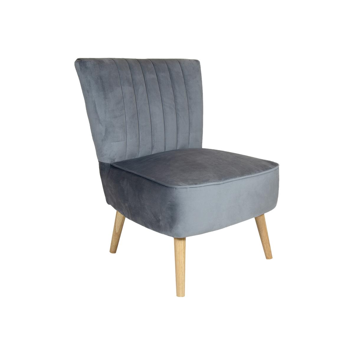 This elegantly crafted cocktail chair features a delicate, vertical stitch, adding a scalloped texture and heaps of character. Wrapped in soft velvet fabric, this chair is perfect for adding sophisticated style to any room, whether lounge, bedroom, or office. It's solid wood legs are angled to provide a sturdy, yet stylish base, whilst this striking shade of grey will ensure this piece is the focal point of any room.