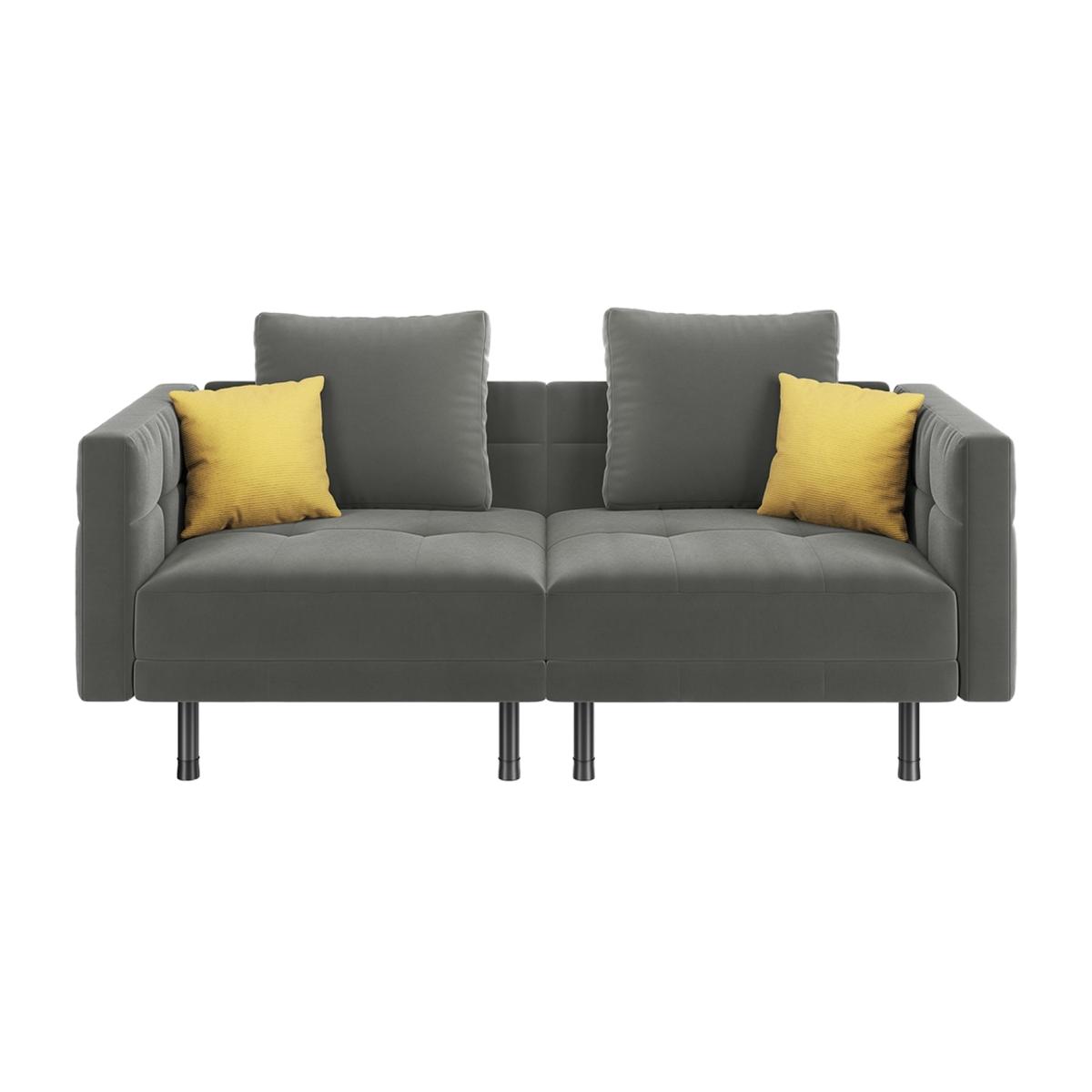 Velvet Convertible Sofa Bed with 4 Pillows - Grey