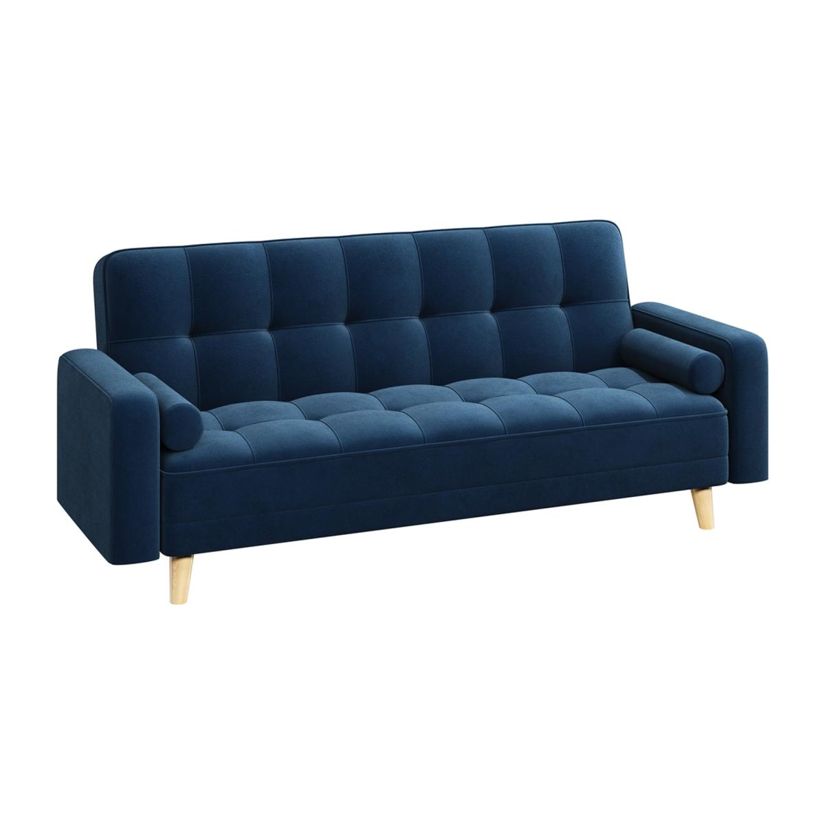 Velvet Convertible Sofa Bed with Armrests - Blue