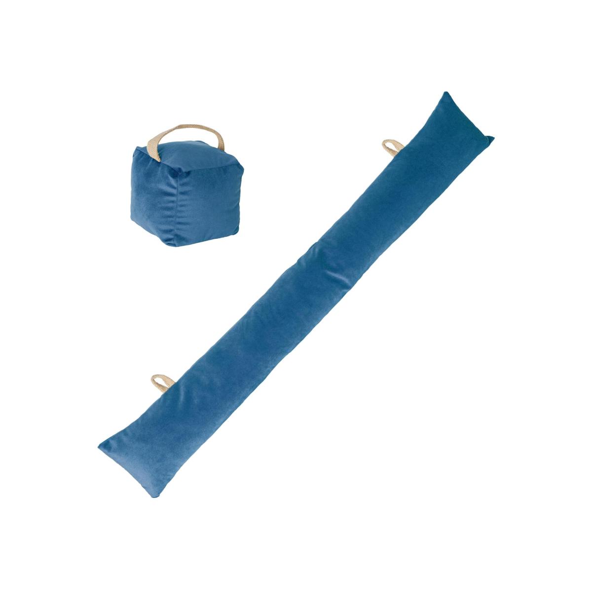 Add a pop of colour and keep your feng shui flowing through any room and home with this Velvet Cube Door Stop and Draught Excluder Set from Nicola Spring. Filled with just over 1kg of sand, our sturdy door stoppers stand strong against interior doors without the risk of scuffs and scratches, thanks to their soft plush velvet finish. The matching draught excluders, meanwhile, are designed to sit snugly across the base of either internal or external doors, helping to keep those bracing winter winds at bay. A choice of vibrant, jewel-inspired tones brings a stylish and sophisticated aesthetic to any interior, while a sturdy hessian-style handle makes moving and repositioning a doddle.