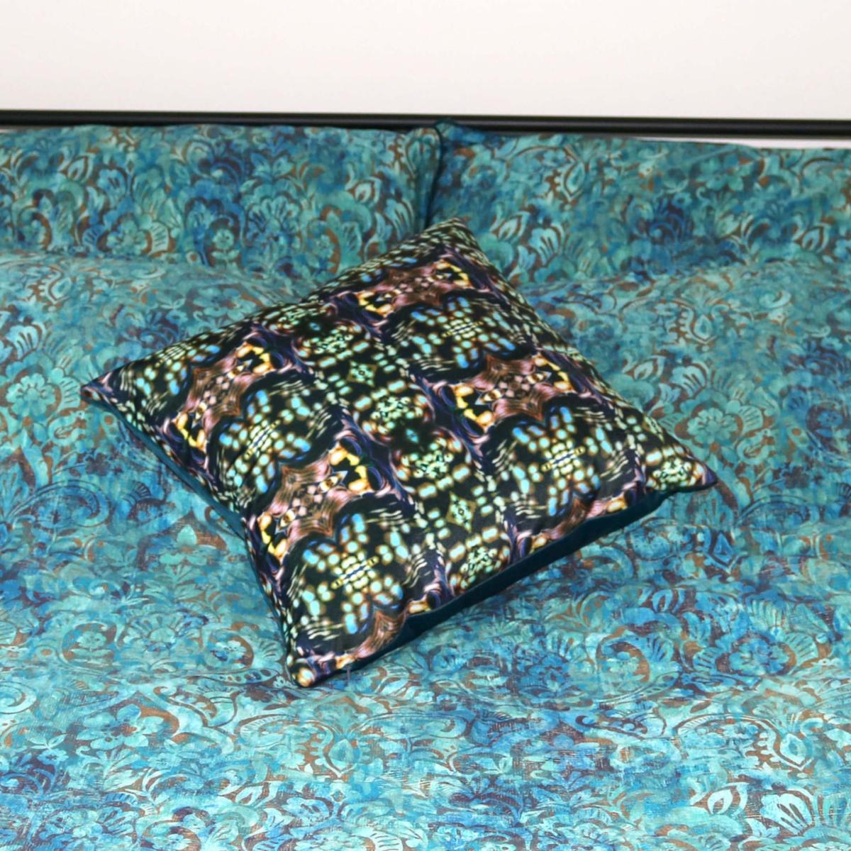 Absolute luxury. This stunning cushion cover will be the centre of your room and catch the eye of all guests in envy. Velvet printed with the Clamber design, coupled with a contrasting blue velvet back. Hand made in Australia. All Benni Designs are inspired from underwater photography.