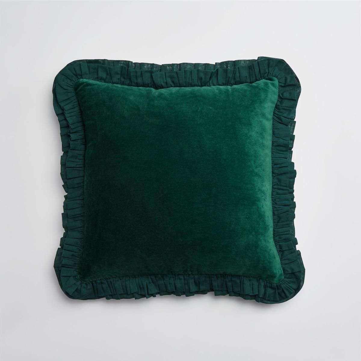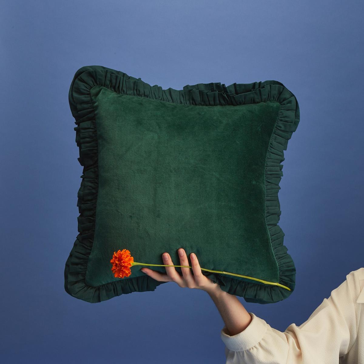 Our exquisite washed velvet cushion is adorned with a delightful double ruffle voile trim. Crafted with the utmost care, this cushion offers a touch of elegance to any space. Filled with premium UK wool, it provides firm support for your comfort. Available in a stunning array of colours, our cushion adds a captivating charm to your home decor.