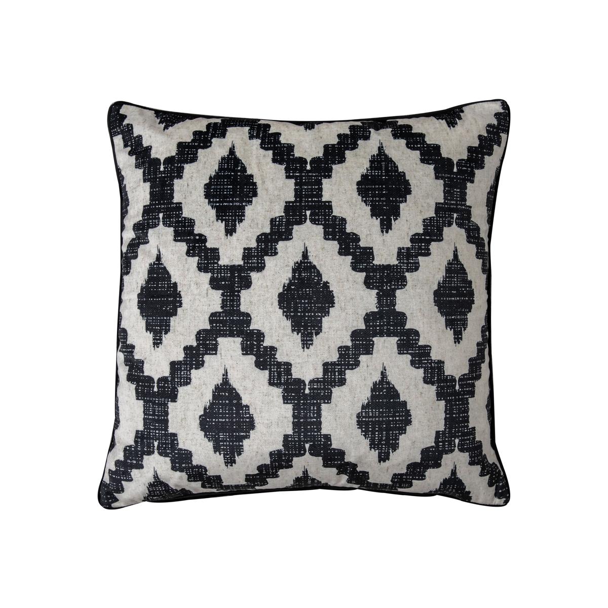 I love the velvet and diamond pattern of this cushion - it adds a touch of elegance without feeling too formal. It works particularly well in contemporary and eclectic interiors, where it can serve as a statement piece on neutral sofas or armchairs. To style it effectively, consider pairing it with other textured cushions to create visual interest, or use it as an accent in a room with bold colours or patterned furnishings. Practical tip: its rich black detail makes it ideal for hiding minor marks, so it’s a good choice for high-traffic living spaces or bedrooms where durability matters.