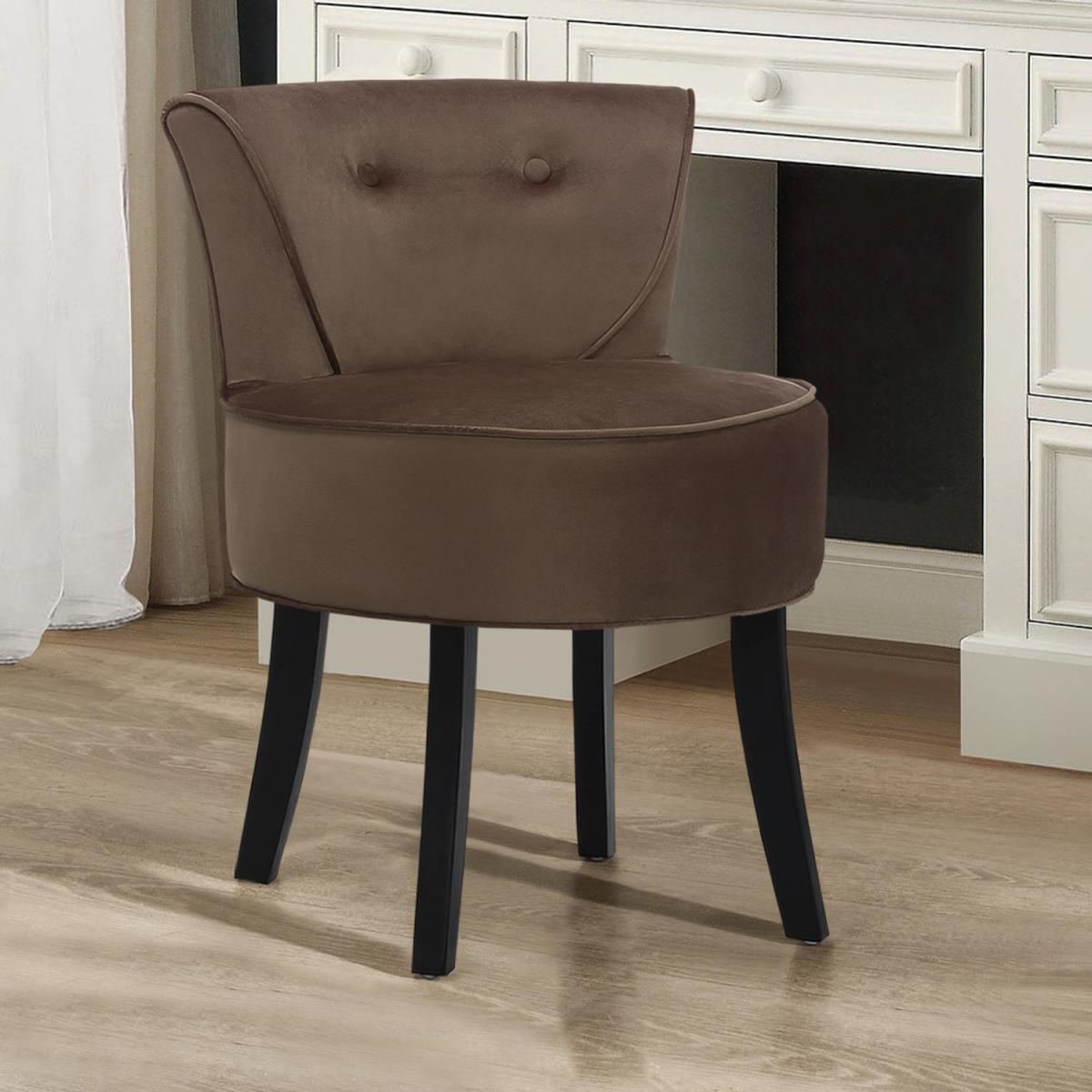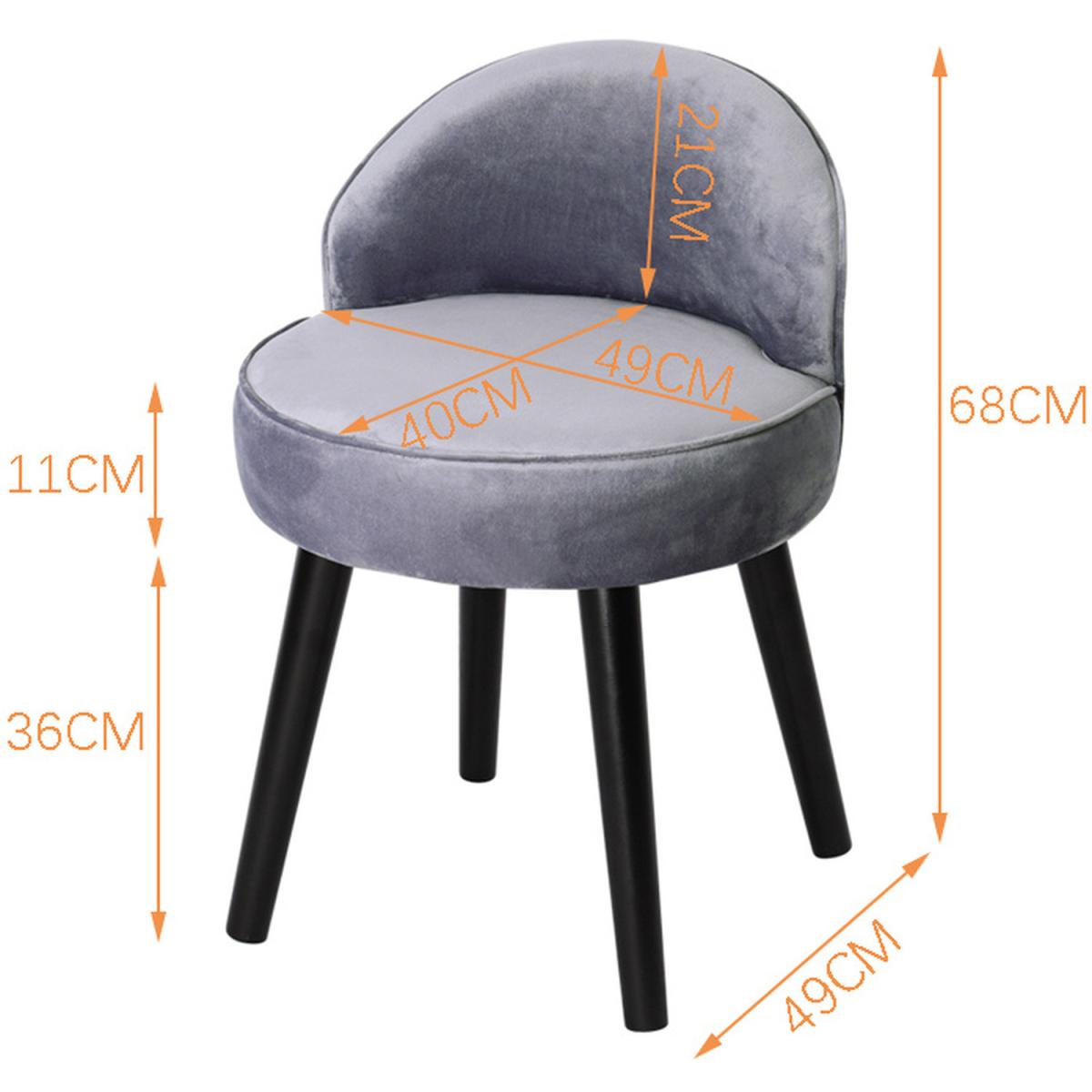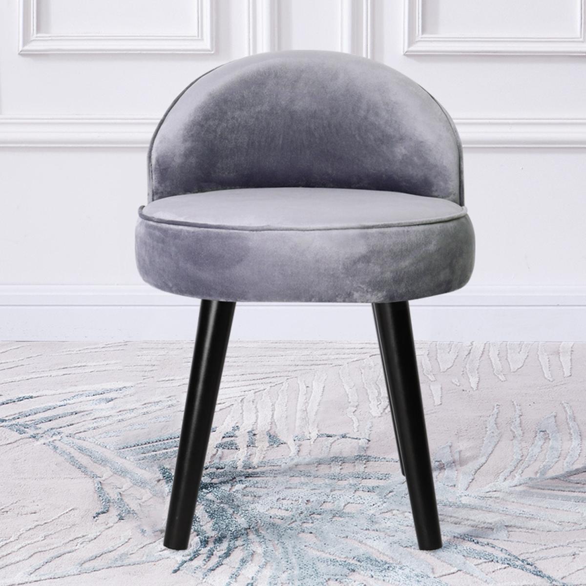 This velvet vanity stool with black coloured legs will bring elegance, style and practicality whether it's being used with your dressing table, or tucked in the corner of your bedroom. Solid and wonderful wood stool legs in an arc shape, can be used with the dressing table or piano. Perpetual classic appearance, upholstered seat and a softback provide a cosy seating experience. Slipmats at the bottom of stool legs to ensure its stability and prevent scratches on the floor. Perfect chair for living rooms, bedrooms, or any space where an extra surface is needed.