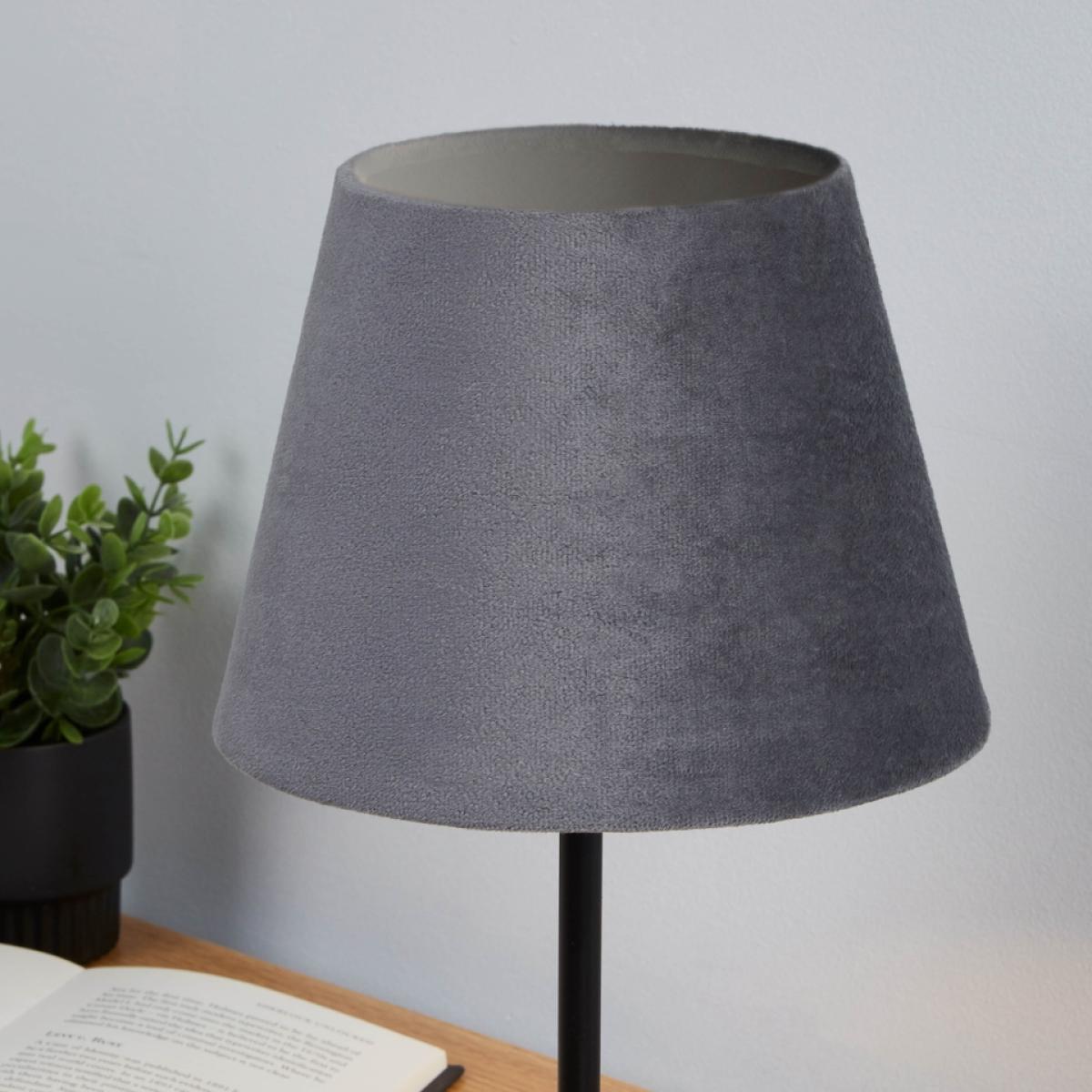 This drum shade offers a sleek, modern look with its charcoal velvet finish, making it versatile for contemporary or industrial-inspired interiors. I love how the textured velvet adds subtle sophistication without feeling overly formal, making it suitable for living rooms, bedrooms, or home offices. For styling, try pairing it with matte black or brushed brass bases to enhance its modern vibe. Practical tips include using warm LED bulbs inside to bring out the richness of the velvet and creating interesting contrasts when placed against lighter wall colours or paired with soft textiles to balance the darker tone. It’s a great choice for adding a timeless, yet current touch to a variety of interior styles.