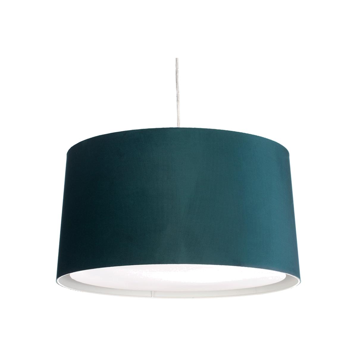 Our Velvet shade in teal easy fit allows you to give a quick, elegant revamp to any of your existing light, with a rich velvet texture providing a luxurious look to any interior. The deep teal colour gives a sophisticated splash of colour, with a silky, opulent feel, which is perfect for creating a more elegant atmosphere. A diffuser is installed into the shade, giving a softer, more relaxing glow to your home. luxurious velvet texture; built-in diffuser gives soft, soothing illumination; easily attaches to your existing fitting.
