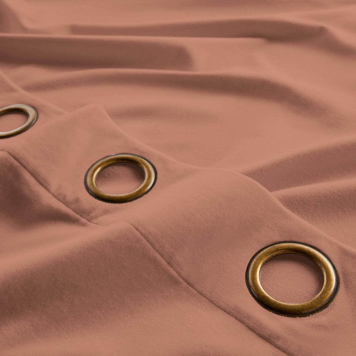 Velvet eyelet curtain: change your decor in a jiffy and bring colour and softness to your interiors: an excellent cut and superior finish for a truly luxury product!Warm and elegant, velvet is a soft, silky fabric with a tactile appearance. The eyelets guarantee nice regular waves and ensure the fabric falls beautifully. They slide perfectly on the rod, making it easy to open and close the curtain. Product Details • 100% cotton velvet • Washed cotton • Stitched hem • Antique brass eyelet finish • Inner diameter of eyelets: 4cm. Care Advice • Machine washable • Fabrics made from natural fibres may shrink in the first wash. Always wash your curtains before making any alterations. Dimensions • D220 x W135cm • D260 x W135cm • Drop 350 x W135cm • OEKO-TEX® Standard 100. Standard 100 certification by OEKO-TEX® tests textile products for harmful substances via an independent, international label.