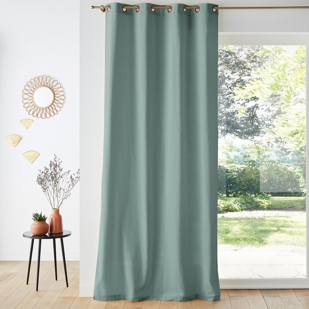 Velvet eyelet curtain: change your decor in a jiffy and bring colour and softness to your interiors: an excellent cut and superior finish for a truly luxury product!Warm and elegant, velvet is a soft, silky fabric with a tactile appearance. The eyelets guarantee nice regular waves and ensure the fabric falls beautifully. They slide perfectly on the rod, making it easy to open and close the curtain. Product Details • 100% cotton velvet • Washed cotton • Stitched hem • Antique brass eyelet finish • Inner diameter of eyelets: 4cm. Care Advice • Machine washable • Fabrics made from natural fibres may shrink in the first wash. Always wash your curtains before making any alterations. Dimensions • D220 x W135cm • D260 x W135cm • Drop 350 x W135cm • OEKO-TEX® Standard 100. Standard 100 certification by OEKO-TEX® tests textile products for harmful substances via an independent, international label.