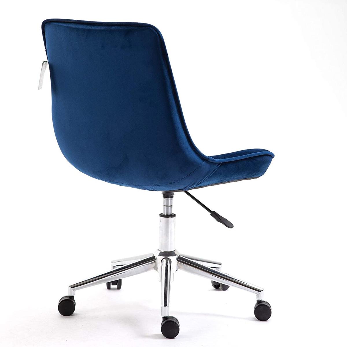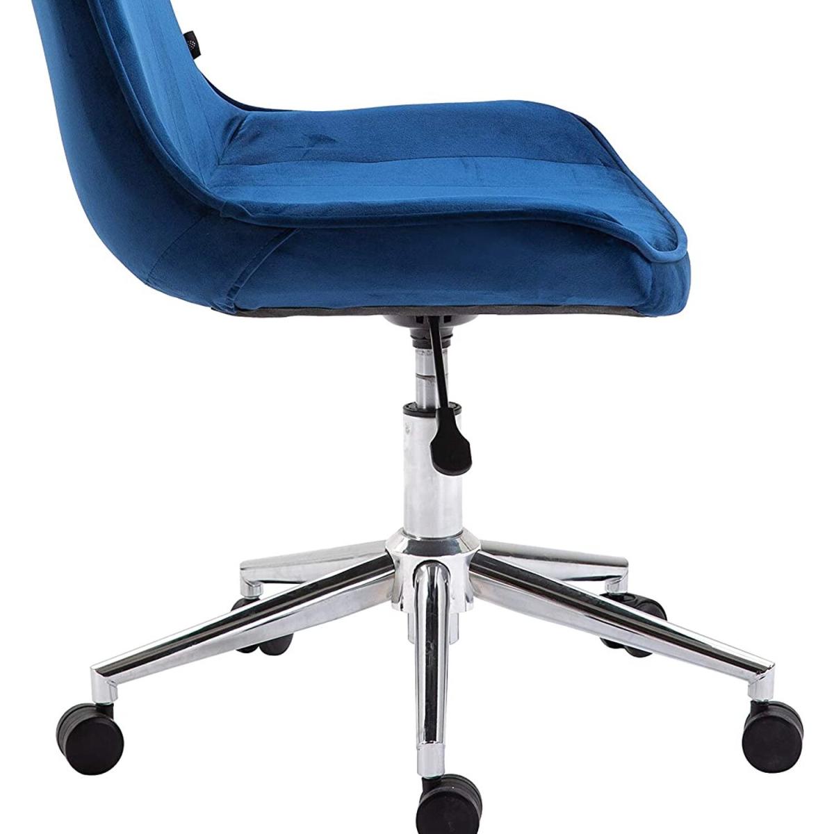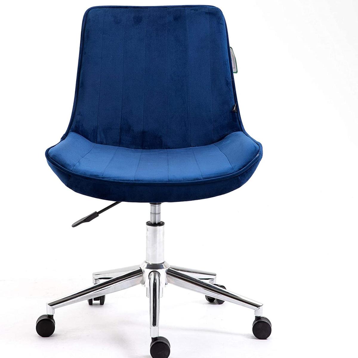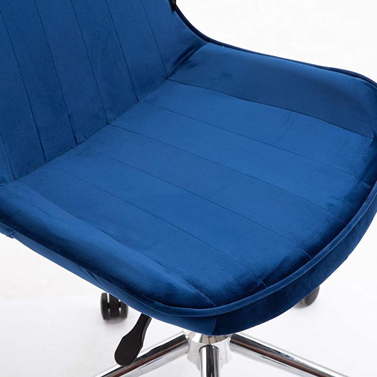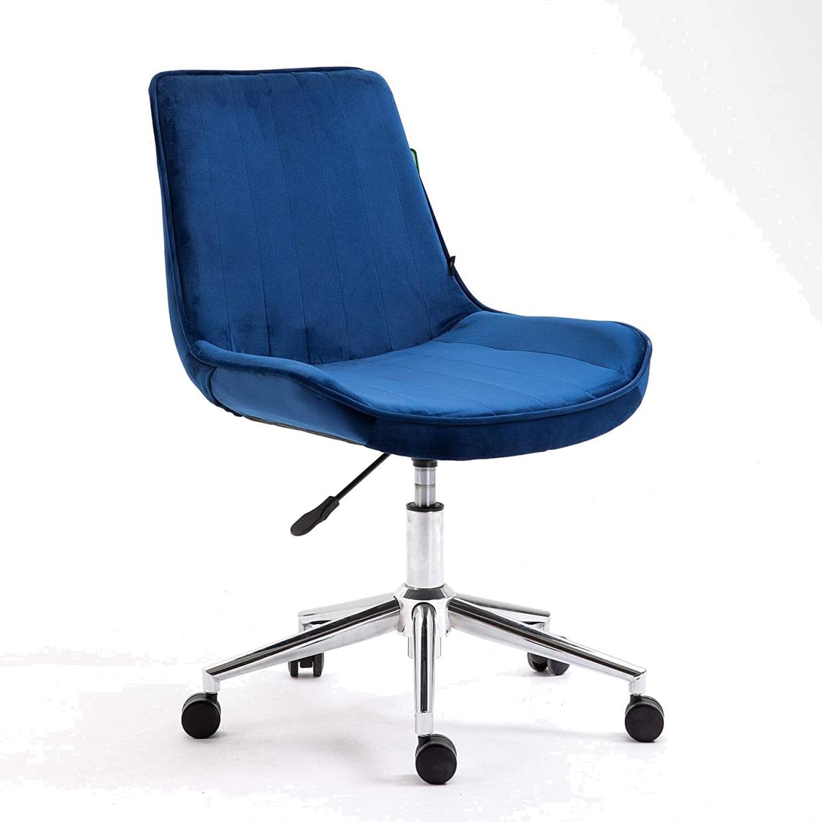 Velvet Fabric Blue Swivel Chair with Chrome Base, Office Chair - Blue