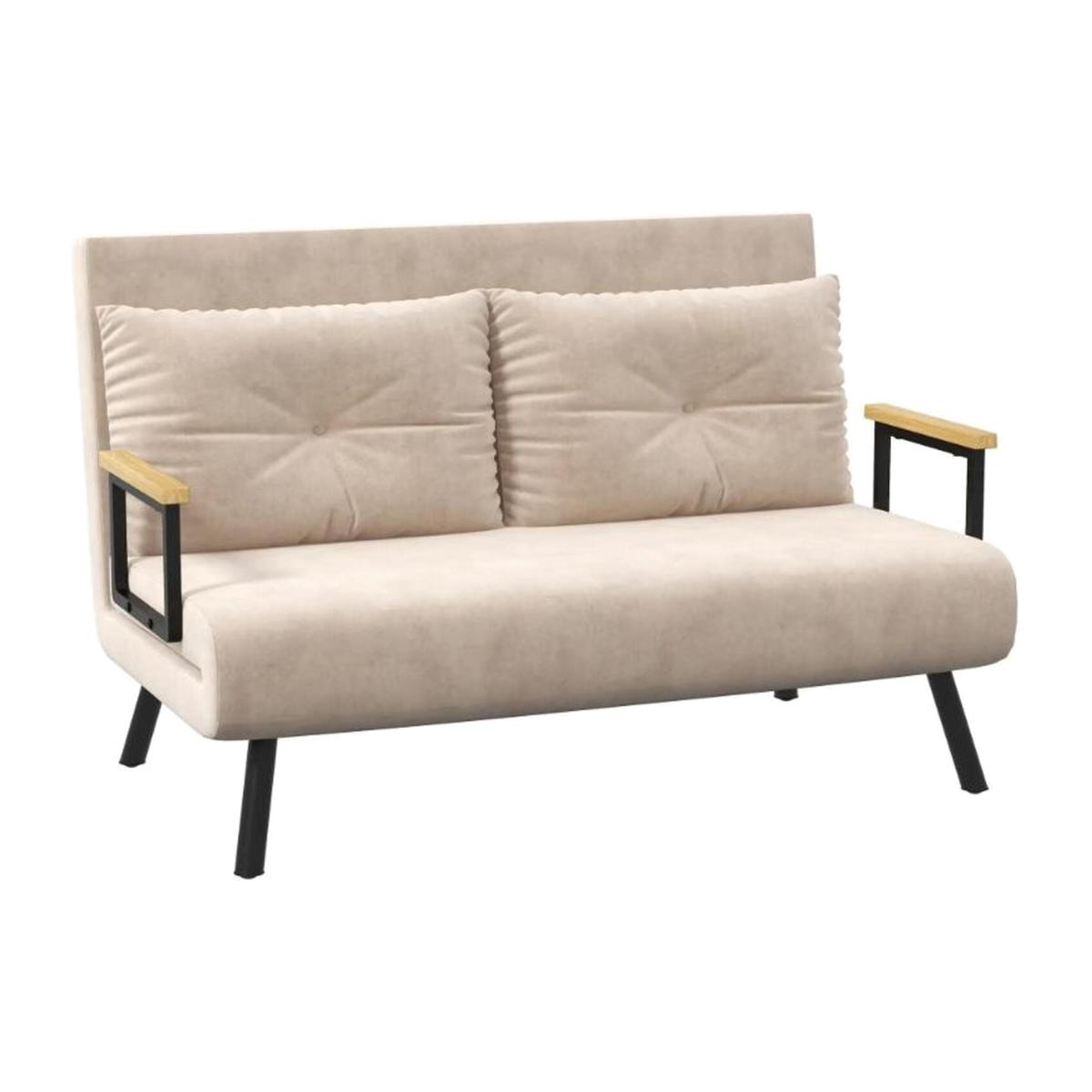Velvet Feel Double Sofa Bed with Pillows - Beige
