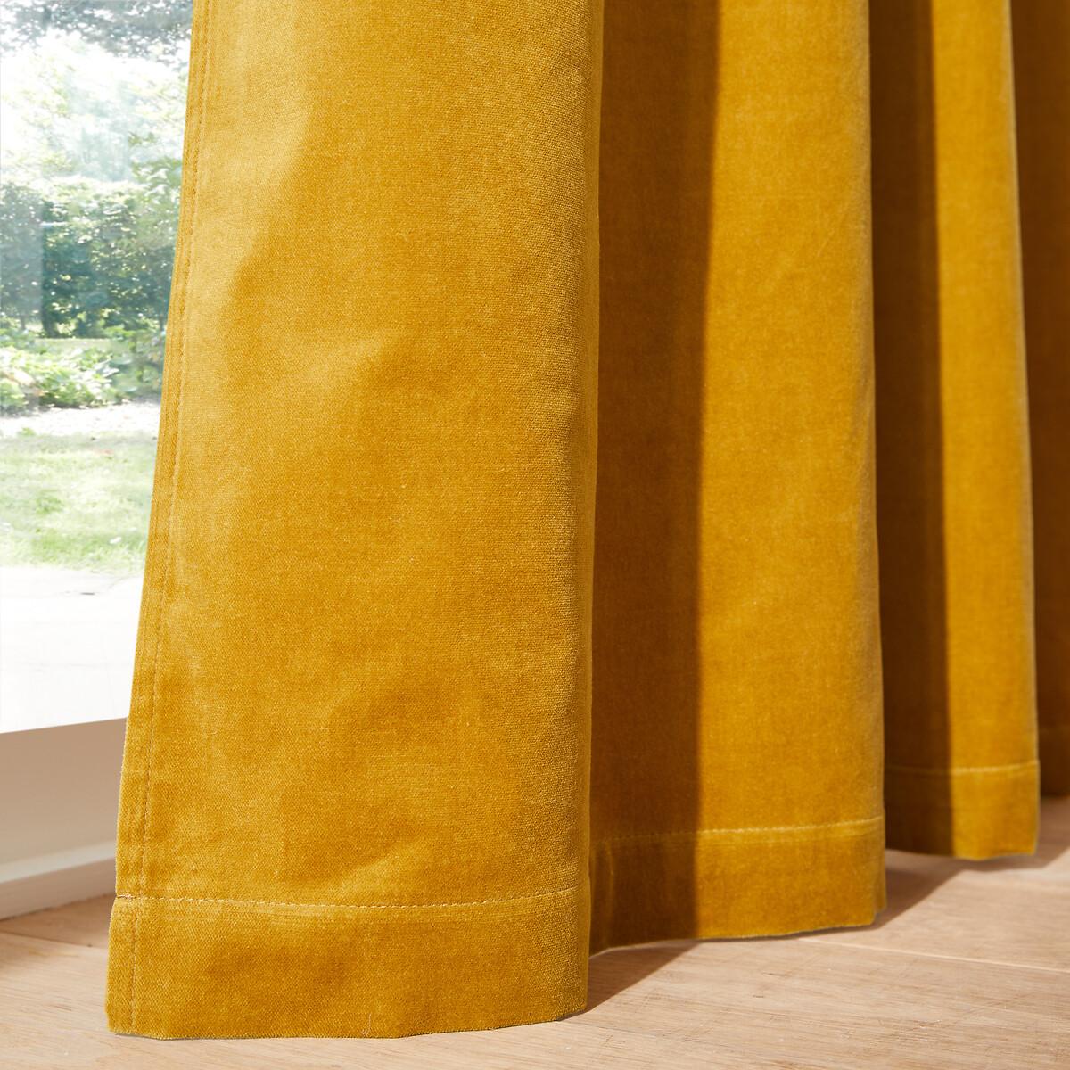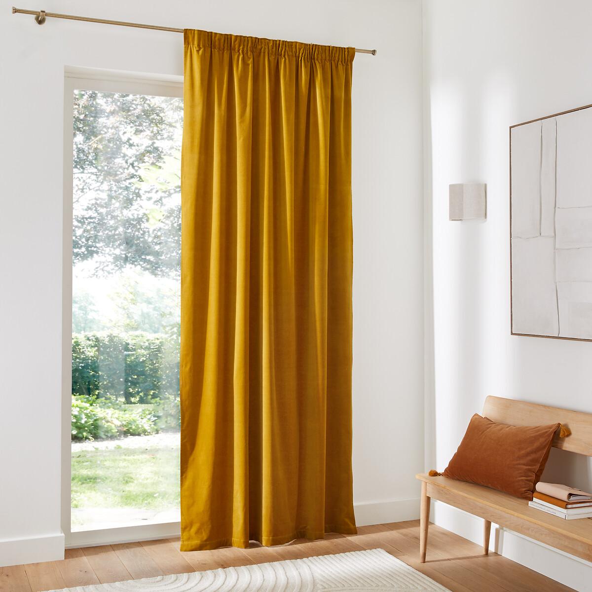 Bring colour, softness and style to your interior with this velvet curtain,: an excellent cut and superior finish for a truly luxury product!Warm and elegant, velvet is a soft, silky fabric with a tactile appearance. The gathering braid creates pleats according to the spacing you want. Several levels of hooks let you choose the height to leave the curtain rod visible or not. Product Details • Screening • 100% cotton, 230g • Velour • Top finish : gathering tape • Finished bottom :Plain hemmed edging • Sold with fixing hooks. To help you in the choice and maintenance of your curtains, do not hesitate to consult our guide by typing "Curtain Buying Guide" in our search engine on the site. Care Advice • Machine washable at 30°C • Maximum shrinkage after washing : Approximately 5 to 7%. Fabrics made from natural fibres may shrink in the first wash. Always wash your curtains before making any alterations. • Do not tumble dry • If you don't need to iron them (linen curtains, Voile Panel...), let the curtains air dry by hanging them immediately after washing, making sure to spread them out to their full width. • If you want to iron your curtains, we recommend using a low-temperature steam iron or a steamer. Dimensions • Drop 180 x W135cm • D220 x W135cm • D260 x W135cm • Drop 300 x W135cm • Drop 350 x W135cm • OEKO-TEX® Standard 100. Standard 100 certification by OEKO-TEX® tests textile products for harmful substances via an independent, international label.